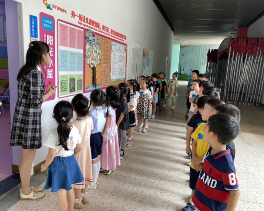学校还为孩子们专门设计了新生启程课程,各个学科的老师全部参与研讨,根据这个年龄段的儿童心理和学习特点,进行学科融合。在开学第一周调整课本知识教授顺序,将适合入学之初的内容整合在一起,将习惯培养贯穿进语文、数学、英语、音乐、体育、美术等课程,站在孩子们的角度,帮助他们适应全新的小学生活。