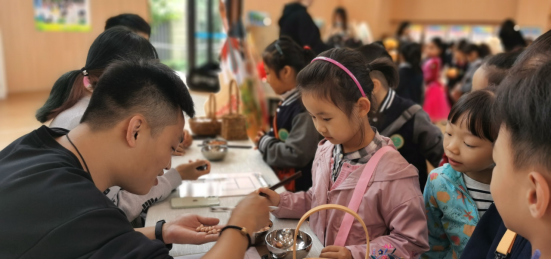 体育学科设计的“粒粒皆辛苦”,既锻炼了孩子们的手眼协调能力,同时也提高了专注力,手眼并用,屏息凝神,多么投入啊!