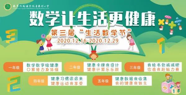 今年,注定是不平凡的一年,新冠疫情的爆发,让人们深刻认识到生命的可贵,也让我们对健康有了新的认识。一个人一天食用几个鸡蛋最健康?书包多重最合适?什么场合应该用多大的声音?人正常的血糖值是多少……本届生活数学节,各年级将以“数学让生活更健康”为主题开展精彩纷呈的系列活动。
