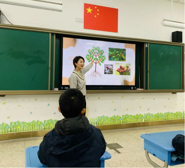 上课聊咖啡、喝咖啡?没错!一(3)班顾秦谊妈妈正在给孩子们上《认识真正的咖啡》呢!秦谊妈妈先给孩子们提出了一个问题——咖啡饮料是怎么来的?引导孩子透过现象看到本质,揭示咖啡首先作为一种植物的属性。课堂上,秦谊妈妈不仅调动孩子们的视觉,还调动嗅觉来了解咖啡;不仅让孩子们认识咖啡的生长过程,还了解咖啡饮料的制作过程。秦谊妈妈频频与孩子们亲切互动,抛出问题,调动孩子们的积极性,孩子们在轻松愉快的氛围中对咖啡有了更全面的了解。令人愉悦的时光总是那么短暂,这节有趣的课在浓浓的咖啡香气中结束啦!