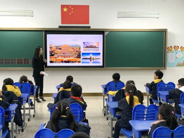 二(5)班尤闻天妈妈给孩子们带来了精彩的一课《故宫的历史》,激起了孩子们的无限热情。闻天妈妈就故宫的建筑进行了深入浅出的讲解。当讲到故宫房顶的吉祥瑞兽时,孩子们小手林立,他们结合自己看过的关于介绍故宫的书,和闻天妈妈进行了有趣的互动。课堂上,孩子们始终保持认真倾听、积极互动的状态。他们收获的不仅是快乐,更是对中国古建筑的认识!