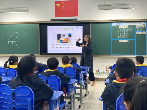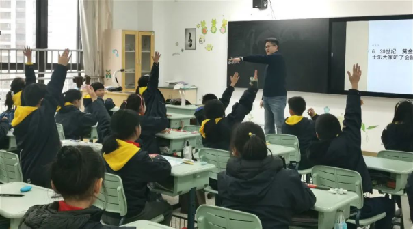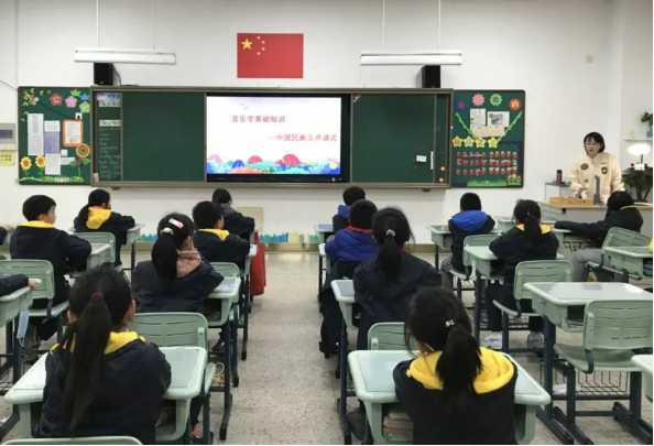 四(1)班李柏霆妈妈向同学们介绍了音乐学基础知识——中国民族五声调式,并重点讲述了五声调式的起源发展和在流行音乐中的应用。课堂轻松有趣、活泼生动。同学们在音乐中互动、游戏,情不自禁地哼唱,真切感受到音乐的魅力。动听的旋律不时响起,同学们不仅享受学习的快乐,还了解音乐学基础知识,收获颇丰!