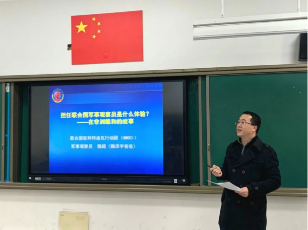二(1)班魏泽宇的爸爸给孩子们讲述了关于非洲维和的故事。课上,魏泽宇爸爸分享了自己在联合国国际维和时发生的趣事,大家听得津津有味,对国际维和有了了解。魏泽宇的爸爸用他自己的经历告诉孩子:要珍惜当下,努力学习,帮助他人,改变世界!