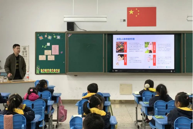 一(4)班李君泽爸爸给孩子们带来了“水知识科普”的主题课程。君泽爸爸首先带着孩子们认识到水在生活、生命中的重要性,接着带孩子们了解食物中水的含量。课上,君泽爸爸精心设计了有趣的问答环节,还带着孩子们做小实验探索水的奥秘。孩子们认真倾听,热情回应,纷纷表示认识到了水资源的重要性。