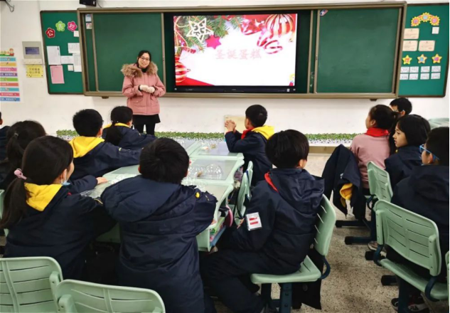 四(2)班郑芝怡妈妈给同学们带来了一节“圣诞蛋糕制作”的课。由于条件的限制,不能让同学们在课堂上经历做蛋糕的全过程,主要体验“蛋糕装裱”这一环节。芝怡妈妈和骐羽妈妈做了精心的准备,带来了切好的水果、奶油、蛋糕胚、奥利奥粉等材料。课伊始,芝怡妈妈给同学们讲解了圣诞节的由来,以及蛋糕的制作方法。最后,两位妈妈带着孩子们亲手制作球形圣诞蛋糕,同学们将蛋糕坯、奶油、水果、奥利奥粉一层层地铺在球形容器里,最后装饰上可爱的棉花糖,可爱的球形圣诞蛋糕就新鲜出炉啦!孩子们不仅学习了做蛋糕的相关知识,也充分享受了动手的乐趣,乐在其中!