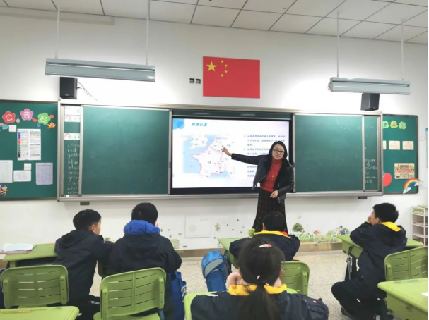 三(6)班王皓天妈妈带孩子们领略了法国的风土人情。从国土面积、经济实力,到人文背景、各类产业,王皓天妈妈借助生动的图片进行了详细的叙述。异国的风土人情让孩子心驰神往,他们认真倾听,还用心做起了笔记。最后,皓天妈妈还教孩子们学习了几句法语,孩子们学着,说着,兴趣盎然,乐在其中。
