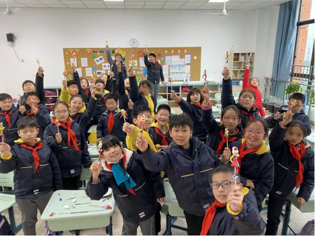 五(1)班的陈宝扬妈妈给同学们带来了一节有趣的面塑课——做面塑孙悟空。陈妈妈给同学们介绍了面塑的起源、发展、使用材料、以及制作方法之后,大家就开始忙着制作了。做面人的原料是蒸熟的江米面,拌上蜂蜜,再掺入十分鲜艳的矿物质颜料,分别制成大红、湖蓝、橘黄、翠绿、黑色等色面。操作时同学们以小竹棍为架,按顺序依次先捏出孙悟空的手、腿、花袄和金箍棒,最后再捏头和脸。同学们个个聪慧过人,心灵手巧,在宝扬妈妈的悉心指导下,大家捏的孙悟空惟妙惟肖!同学们纷纷表示这样的课堂太有意思,既能享受动手的乐趣,又能感受传统文化的魅力!