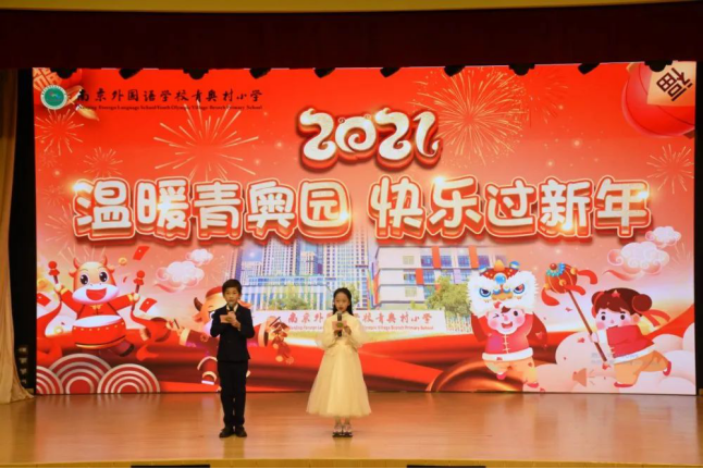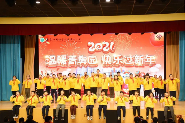2020年最后一天,银装素裹的南外青奥村小学分外温暖,彩虹园里的青奥娃们正在小剧场开展“温暖青奥园 快乐过新年”的迎新活动。