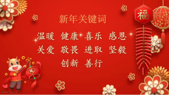 活动现场还展示了全校师生共同推选出的新年关键词:
