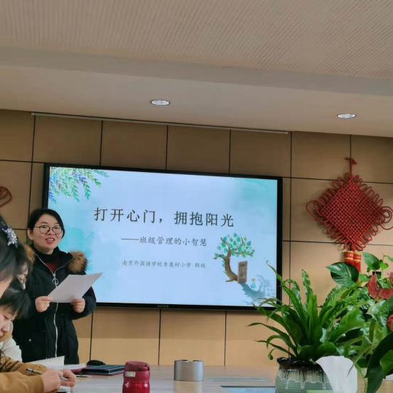 本次活动以“妙招分享、交流研讨、专家引领”为主题,分为“班级管理小智慧分享”、“案例研讨”两个板块。我校邵娟老师在“班级管理小智慧分享”板块进行了《打开心门,拥抱阳光》的分享。“赏识——抵达学生心门的方向”“坚持——轻扣心门的力量”“助力——闪耀心门的微光”,邵老师从三个方面和老师们分享了自己的班级管理小智慧。