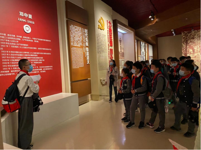 出发前,中队辅导员带领队员们学习雨花英烈事迹,感悟初心使命。