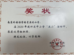 在2020年义务教育阶段学校“五小”活动(建邺区赛)中,我校共有区一等奖3人,区二等奖8人,区三等奖30人。在南京市赛中,我校三(6)班马逸柠同学荣获南京市一等奖,三(1)班刘宸羽同学、四(1)班刘保逸同学、四(6)班王予恬同学荣获南京市三等奖。