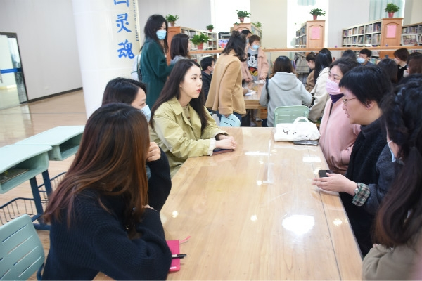 活动结束时间,学校还特别安排了交流环节。在班主任老师的引导下,家长们有序来到图书馆,与班级的任课老师个别交流。