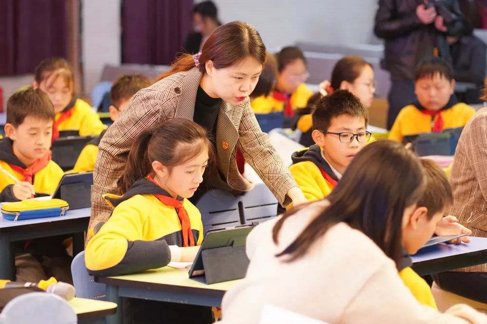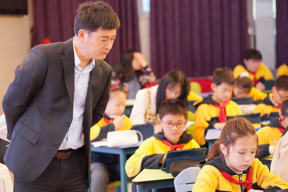 课堂观摩中,各校研究团队的教师代表们走到了学生身边,零距离、细致地观摩孩子们的课堂学习样态和评估课堂效果。