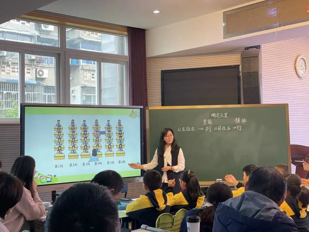 我校李慧主任执教四年级数学下册《确定位置》一课。她以学生的学情为出发点,基于学习前测结果进行差异化分组,学习任务环环相扣、层层推进,从感性体验到形成概念化的认知,帮助学生深度理解数对,密切联系生活,迁移拓展延伸,时刻给予学生差异化的关怀,助力每一个学生在不同层次上的发展。