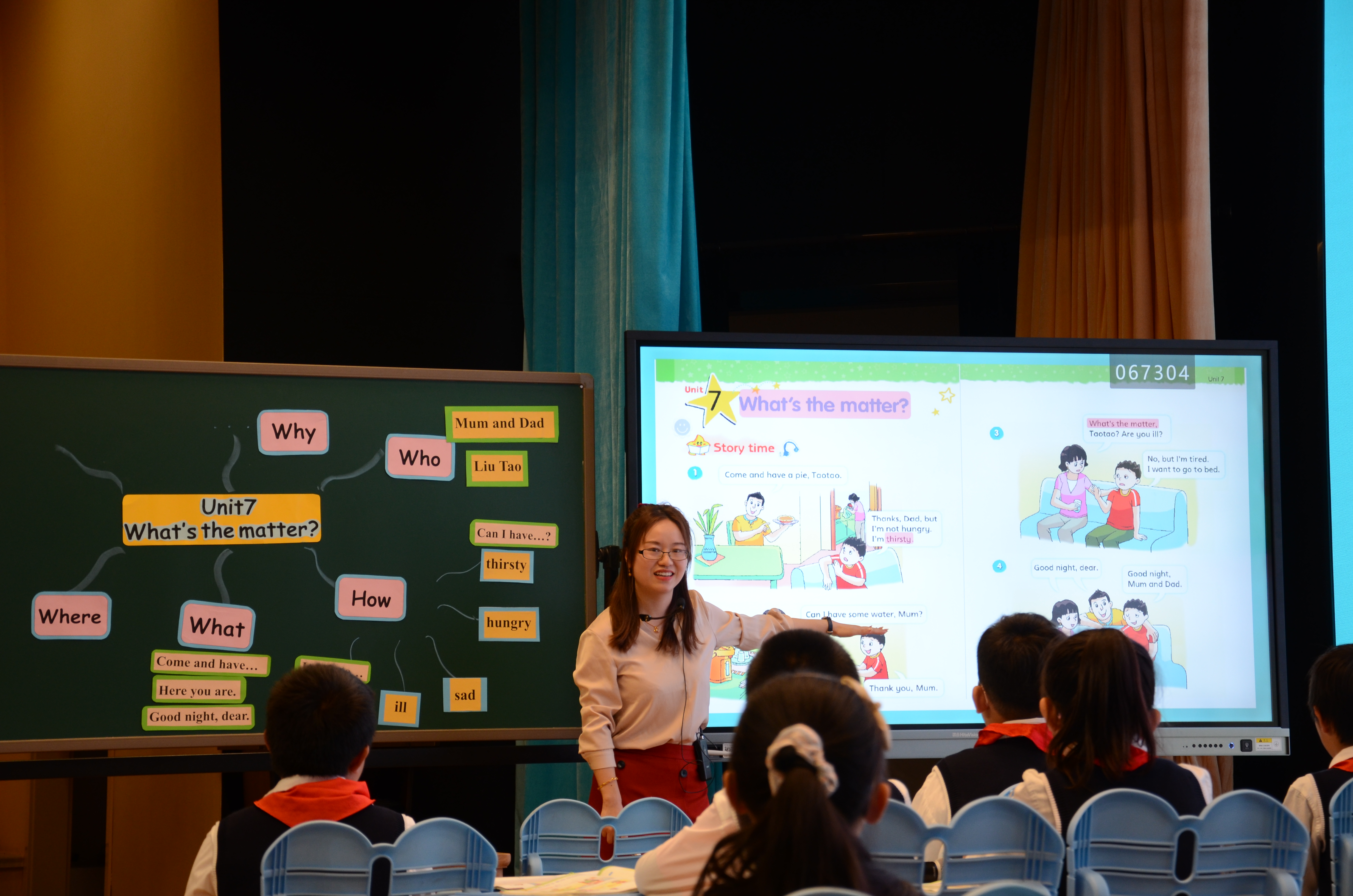 第二节课由南外青奥村小学魏同悦老师执教。她展示的是四年级Unit 7 What’s the matter? 故事版块的教学。魏老师先从“‘新冠’病毒的三种症状是什么?”提出问题,再以“为什么刘涛不是患了‘新冠’”分析问题,构建学习任务与活动,带领学生深度解读文本。最后又以“如何保持健康的生活方式抗击‘新冠’”,走向问题的解决。课堂基本没有非黑即白二维判断的低阶问题,每一个问题都蕴含思辨能力的培养,各个能级水平(thinking out of the box, analyzing, questioning, summarizing, reasoning, structuring, inferring, reflecting)更替交互,稳步螺旋上升。其间,教师为每一个任务构建思维与表达支架,指引学生学会“有声”思考,精准表达,培养他们思维与表达的发散性、多样性、准确性、逻辑性、完整性、系统性,逐渐实现从低阶到高阶能力的进阶。