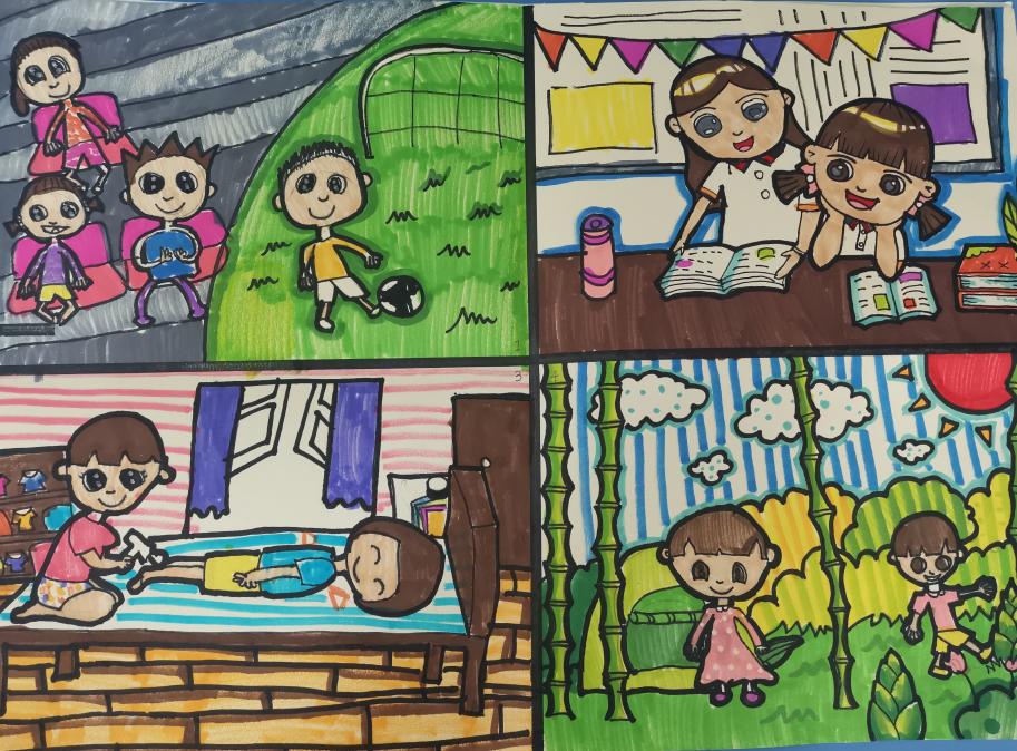 学校积极发动学生参加建邺区第三届“悦心杯”心理绘画比赛。本次比赛以“亲子沟通、家校协同”为主题,同学们以自己的成长经历或心灵感悟为主要内容进行了绘画故事创作。参赛画作不单客观展现了学生的自我经历,也体现了人物在故事中心理的“起、承、转、合”,以下是部分参赛作品: