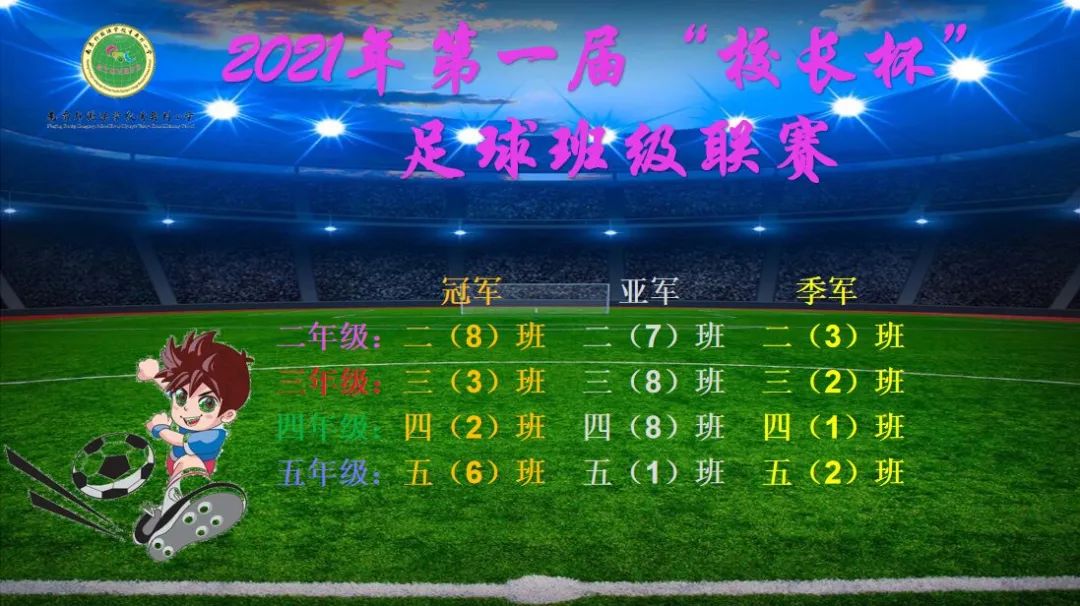 2021年5月,我校开展了第一届“校长杯”班级足球联赛,本次比赛经过两周的激烈角逐,终于落下帷幕,二(8)班、三(3)班、四(2)班、五(6)班分获四个年段的冠军!