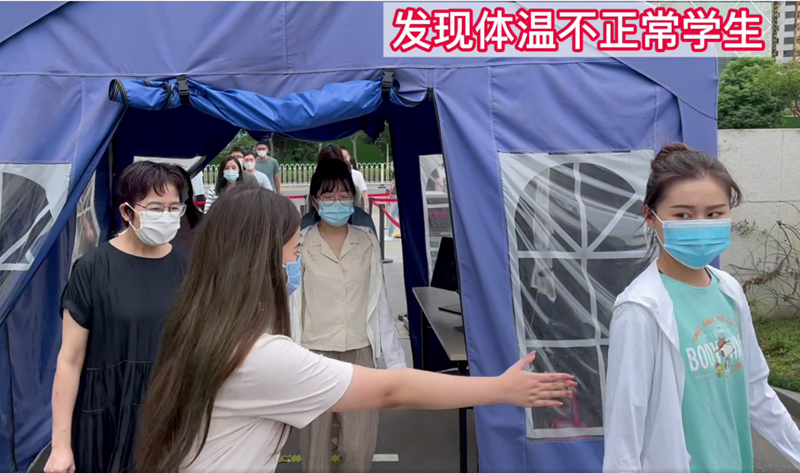 入校时,学生戴好口罩从测温通道间隔一米有序进校。测温老师发现体温异常学生,立即通知保健老师带至复测区复测体温,同时通知上级领导、班主任及时联系家长接回就医。学校做好消毒工作和病情追踪。