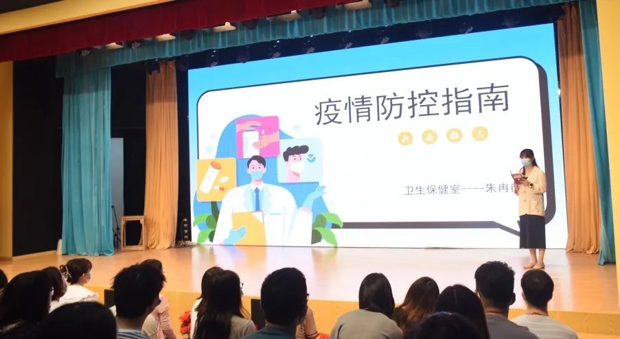 随后,保健老师朱冉冉分别从疫情自我防护、校园环境管理、师生健康管理、秋冬季常见传染病管理这四个方面进行了详细的讲解,进一步提升了全体教职员工的健康防范意识和应急处置能力。