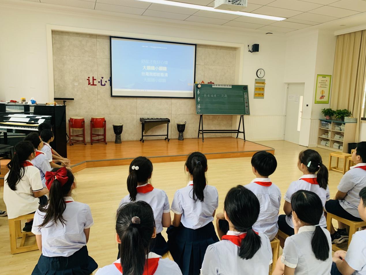 音乐课上,老师带着同学们一起学习好听的歌曲《大眼睛 小眼睛》。
