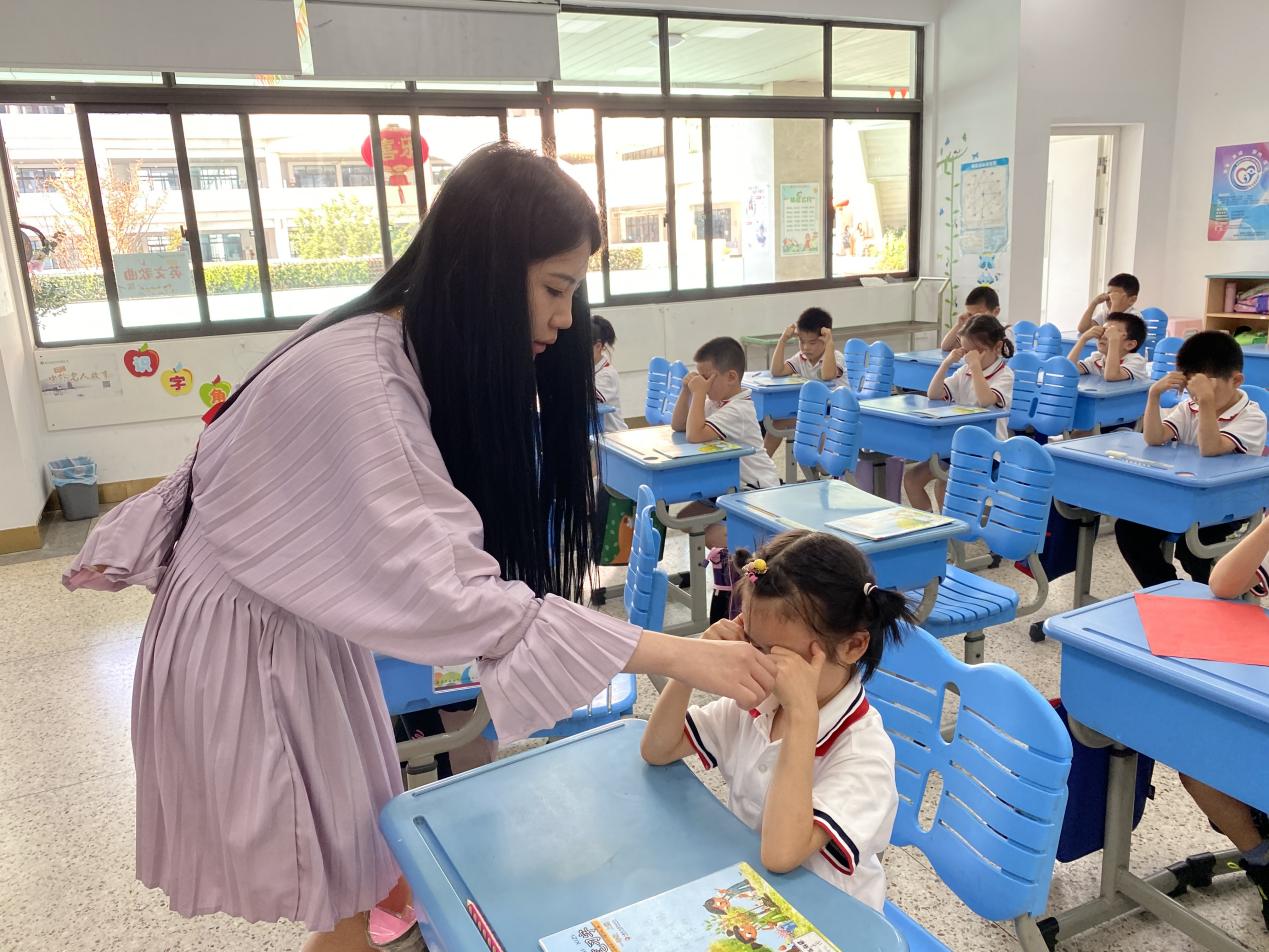 保护视力,预防近视,需要养成良好的用眼卫生习惯。每天两次的眼保健操同学们都能认真对待。老师们也会在操前提醒同学们注意双手卫生,并适时指导眼保健操的正确穴位、手法和力度。
