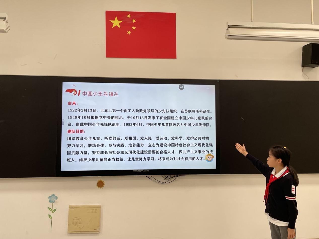 二、三年级队员们从“牢记初心使命、加快国防军队现代化、推进马克思主义中国化、构建人类命运共同体”四个方面开展主题队课学习。队员们高声齐呼“愿以吾辈之青春,护盛世之中华。请党放心,强国有我!”