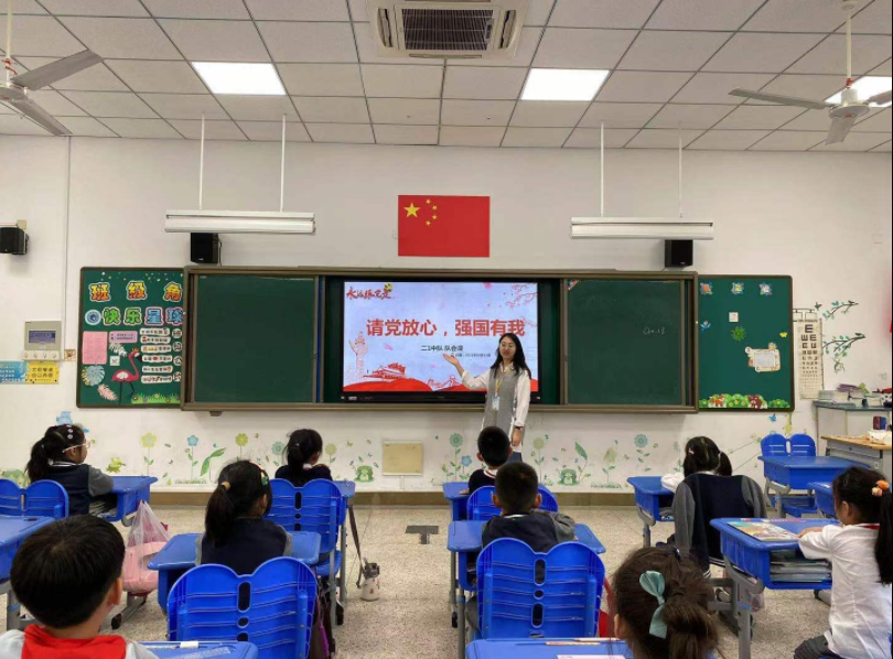 二、三年级队员们从“牢记初心使命、加快国防军队现代化、推进马克思主义中国化、构建人类命运共同体”四个方面开展主题队课学习。队员们高声齐呼“愿以吾辈之青春,护盛世之中华。请党放心,强国有我!”