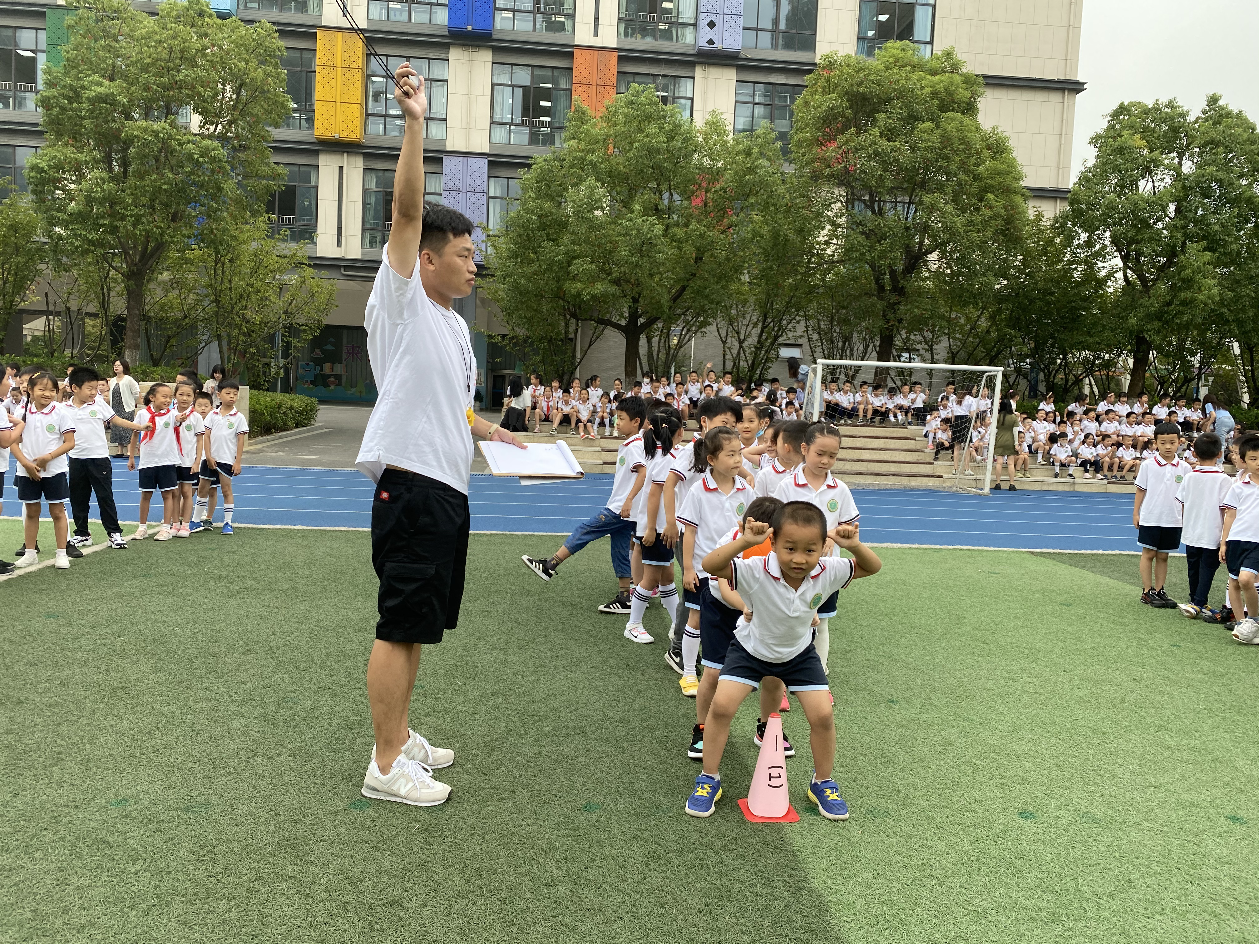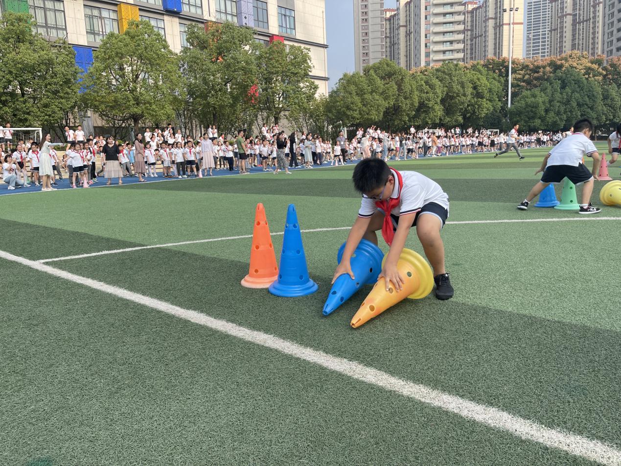 三四年级开展的是“捣蛋鬼别捣蛋”比赛比赛两人一组,后面同学扶起前面扮演“捣蛋鬼”的同学推倒的标志桶比赛中每组同学都齐心协力,有的同学为了同伴快一点,轻轻将标志桶推倒在原地更快地完成了比赛任务