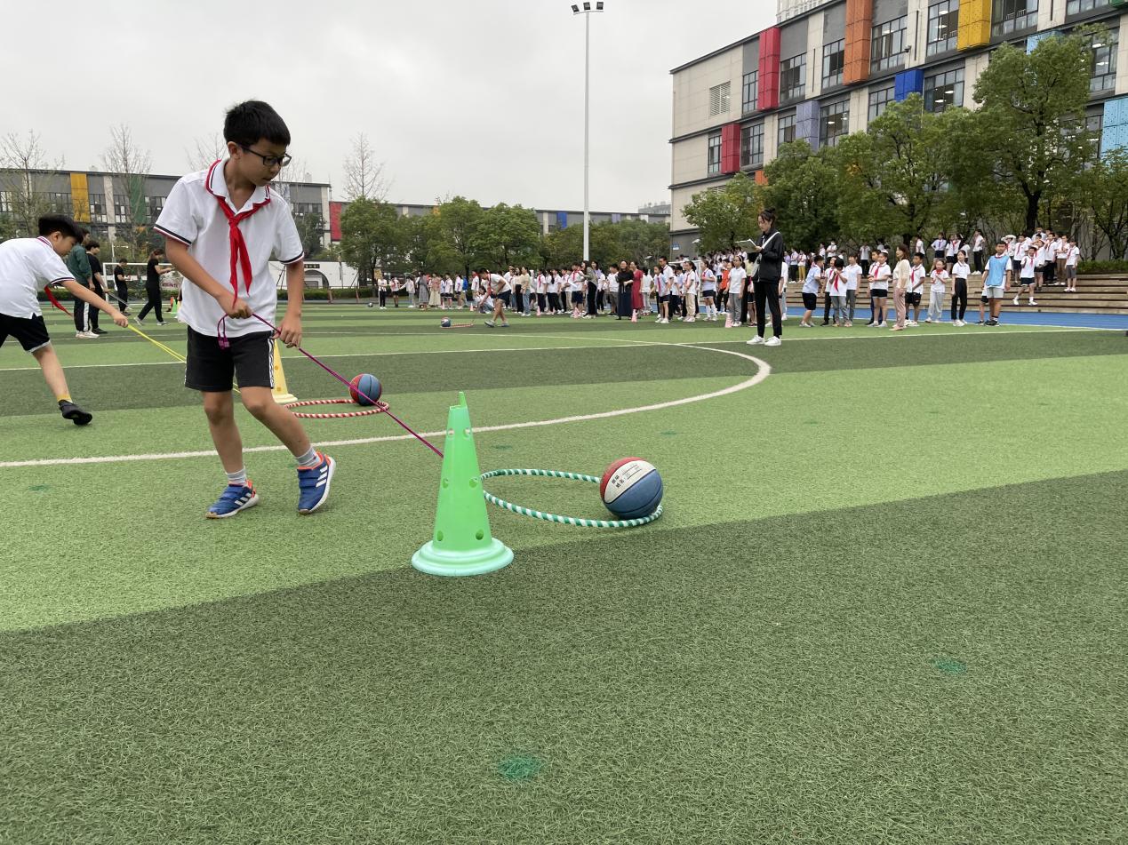 最后进行是五六年级“耕地”比赛。这是一项速度与技巧相结合的游戏,既要有速度,又要想办法让球呆在呼啦圈中高年级的同学运用智慧和技巧完成了比赛。