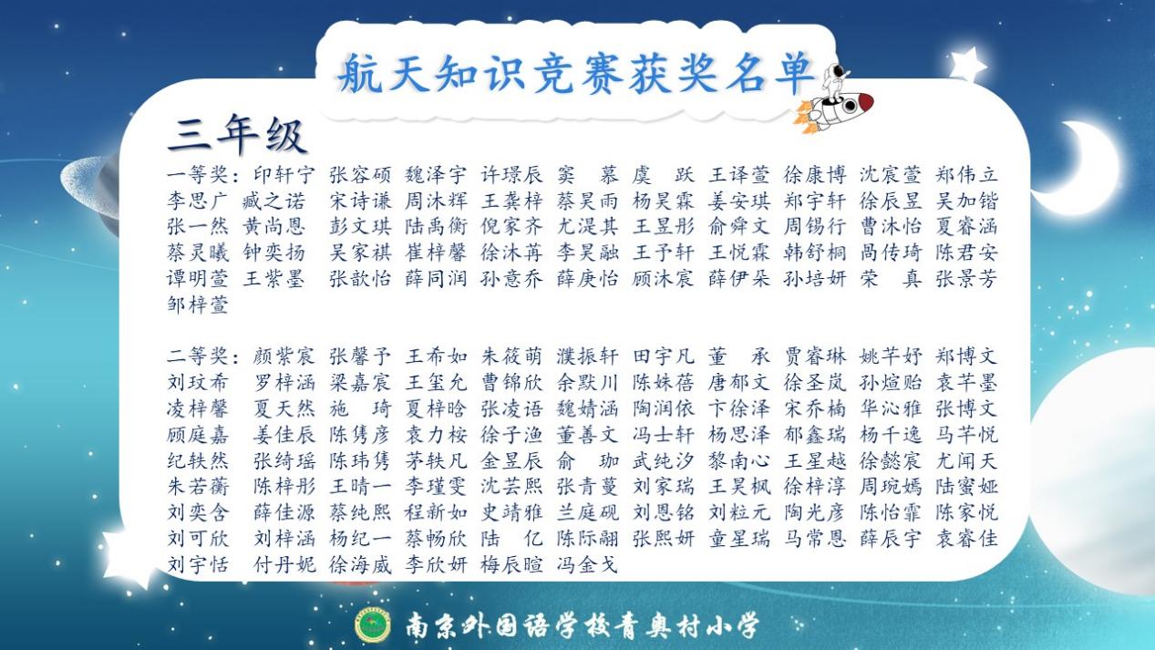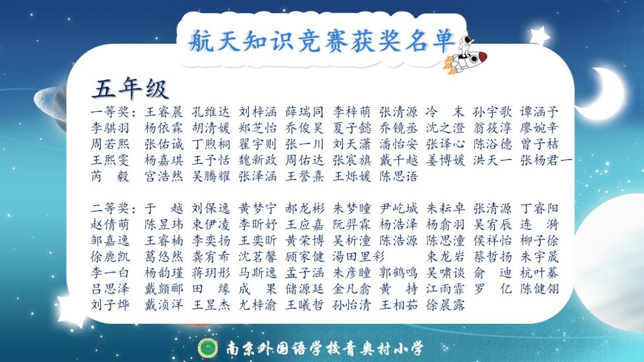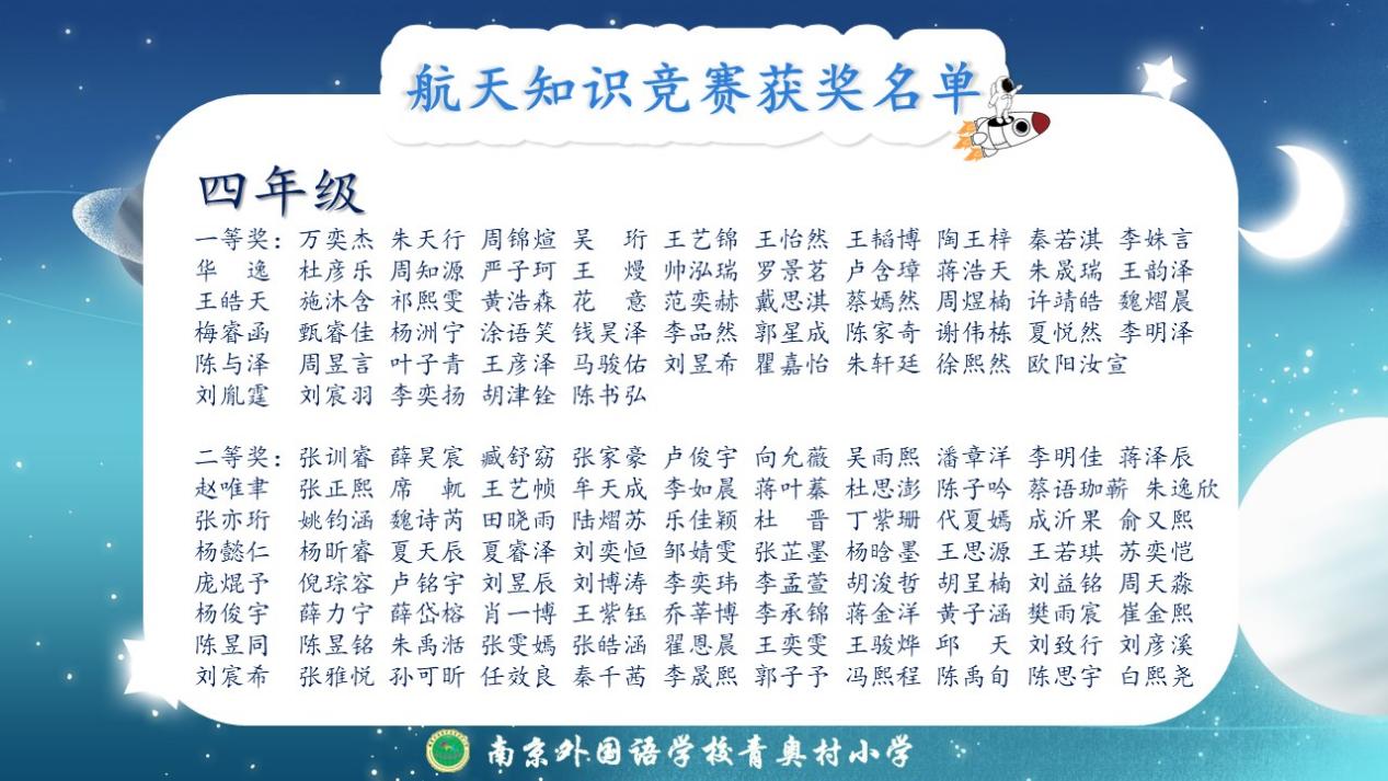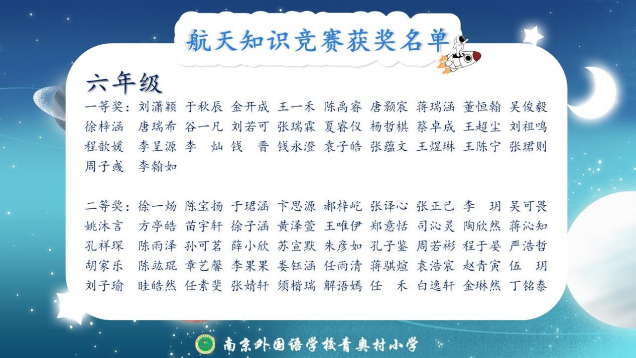 除此以外,这一周,同学们分年段参加了航天知识竞赛,以下是获奖名单: