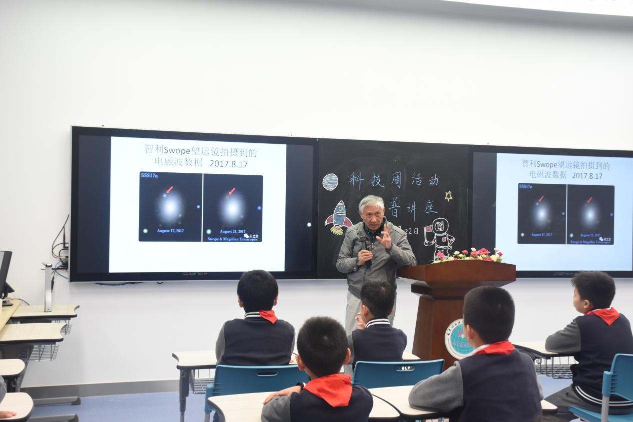 周三中午,我们邀请到江苏省天文学科首席科技传播专家,江苏省老科协科普讲师团、中科院南京分院科学巡讲团讲师葛永良老师。葛永良老师为同学们带来了精彩的讲座《我们观测到的宇宙》,介绍了通过望远镜可以观测到宇宙中的各种天体,比如太阳系大家族的八大行星、蟹状星云、“邻居”仙女座星系等等,十分壮观。主会场和分会场的同学们受益匪浅,想要通过好好学习探索未知宇宙的奥秘。