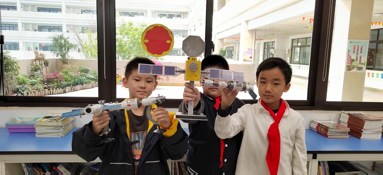 人造地球卫星、空间探测器、航天飞机等航天器的种类、特点、应用领域都不相同,同学们根据自己的所知所想,动手做出了各种精美的航天器。你们瞧,有用于观测气象的人造卫星、对行星展开探测的空间探测器和供航天员们长期工作和生活的载人空间站等等,真是精妙绝伦。