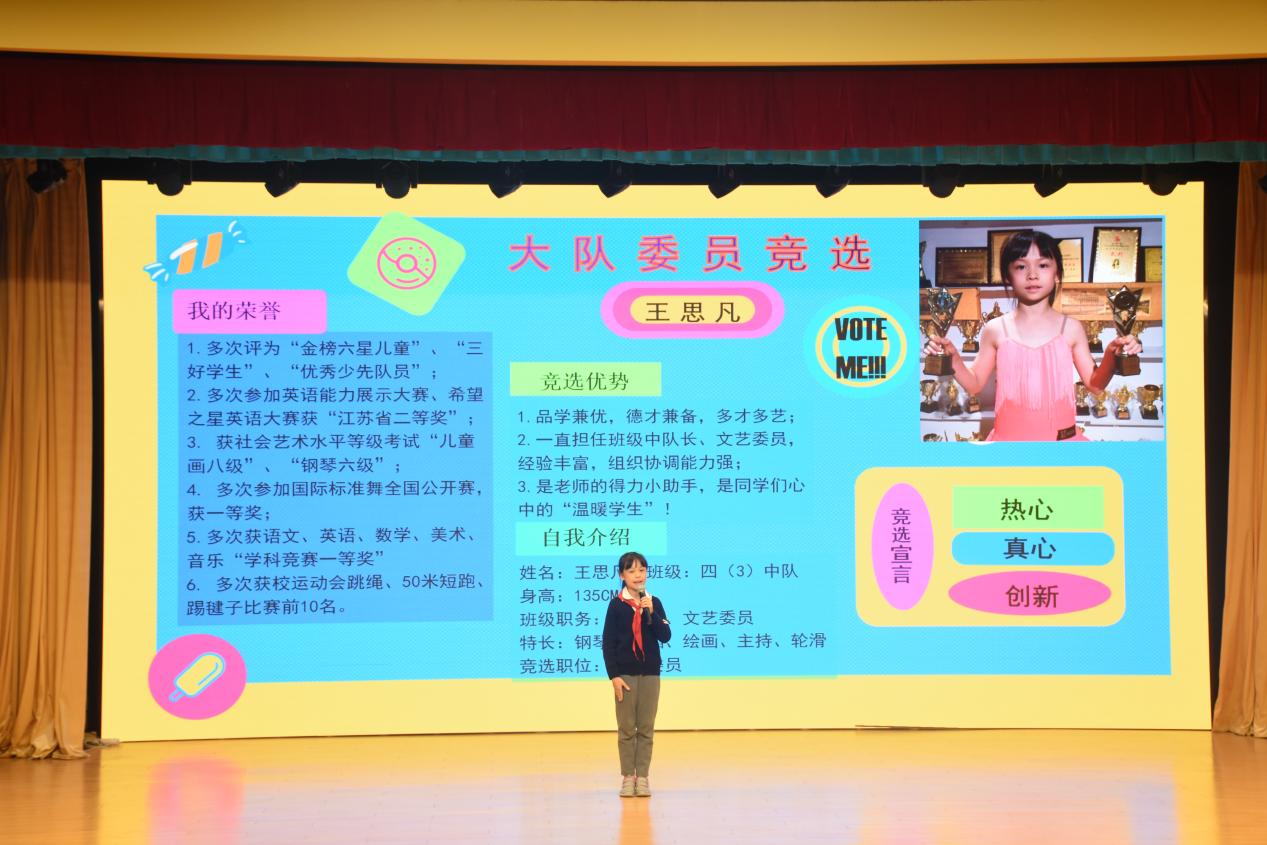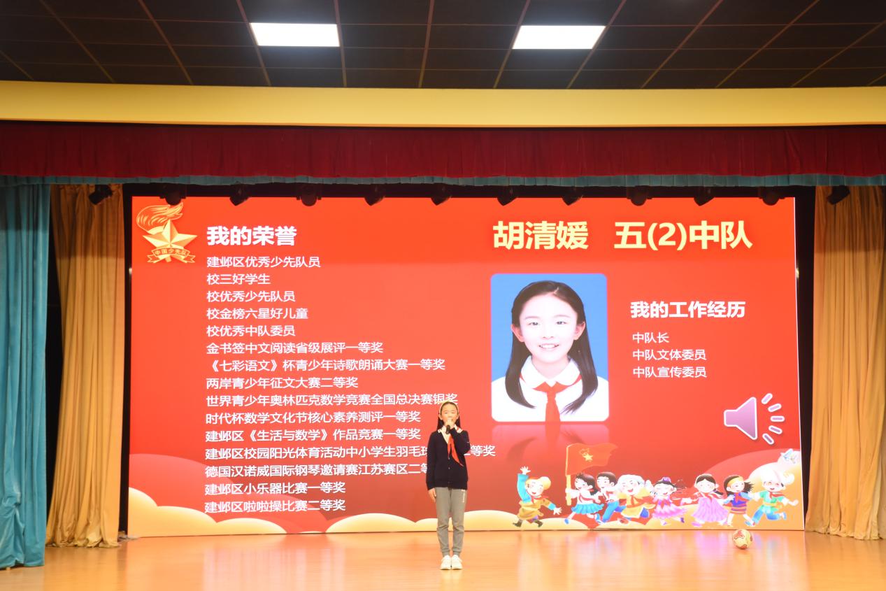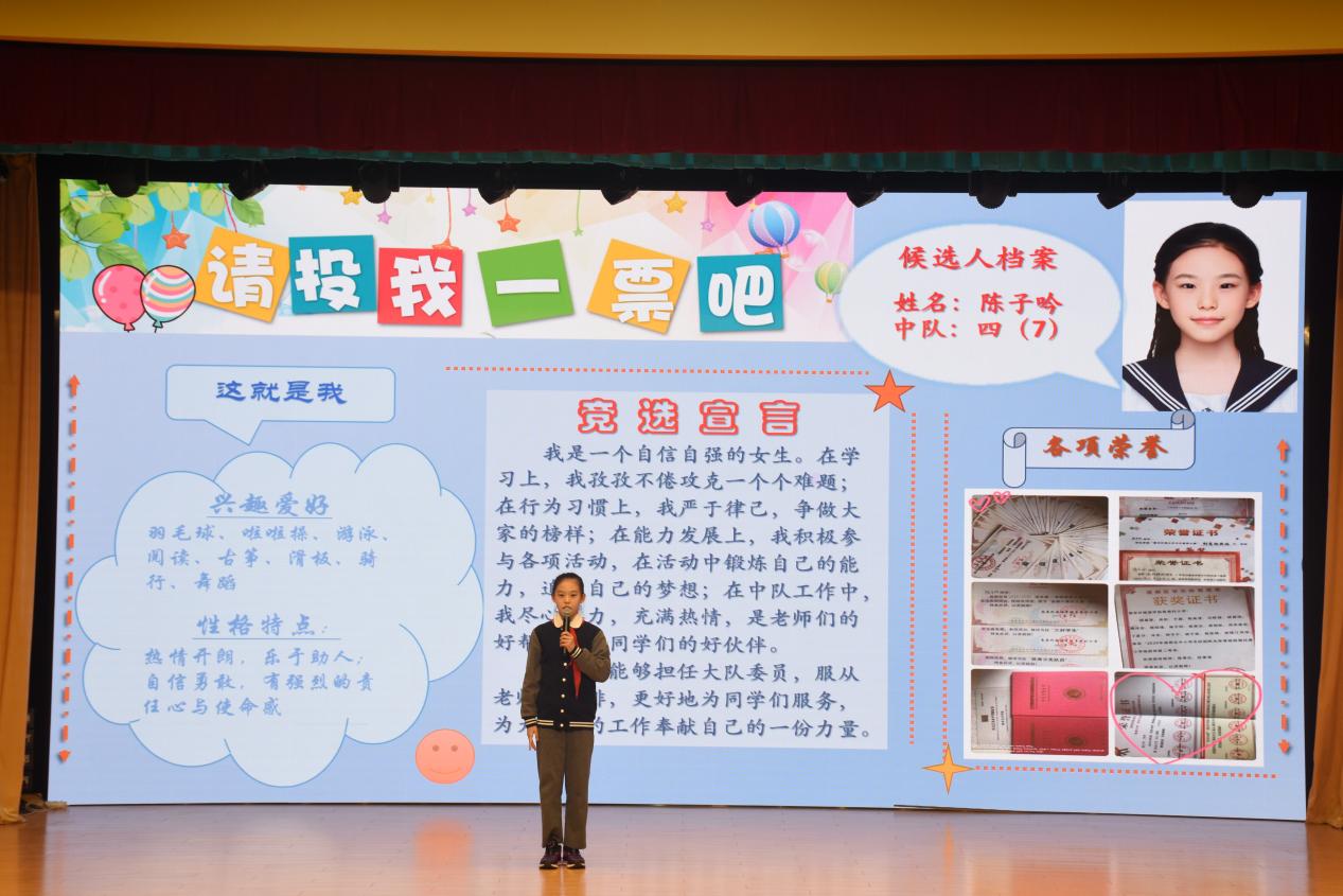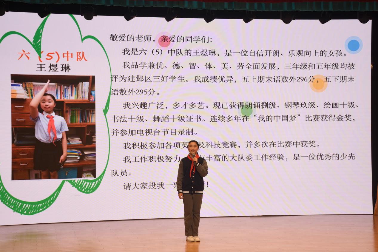 本次大队委换届选举由中队提名,各年级共推选出30名候选人,经过笔试、队员风采展示、少先队员代表民主投票等环节,最终选举产生17位少先队员组成新一届大队委。
