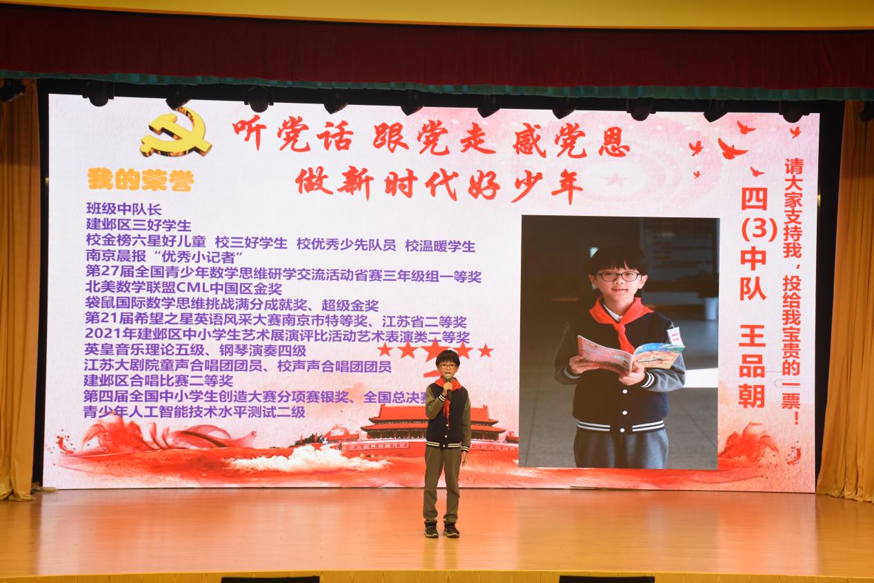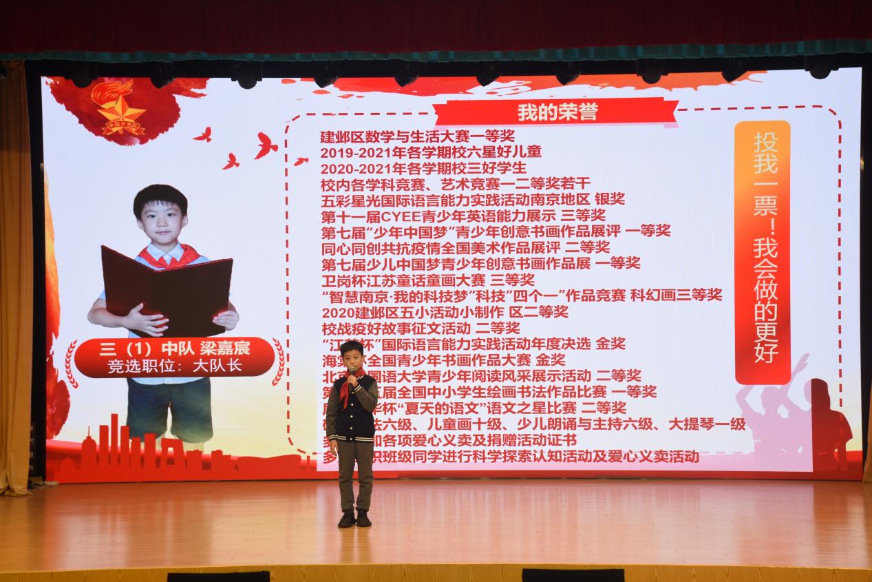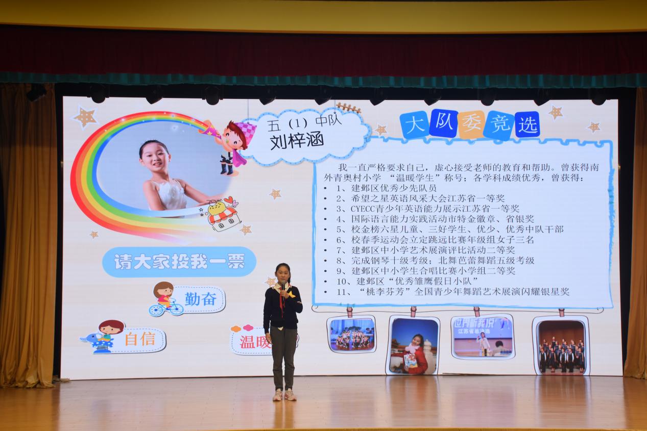 为进一步加强学校少先队组织建设,提高少先队工作的实效性,队员自主管理、自我服务的能力,充分发挥少先队组织在构建和谐校园中的重要作用。本着“公平、公正、公开”的原则,南外青奥村小学开展了“请党放心,强国有我”2021年少先队大队委换届选举活动。