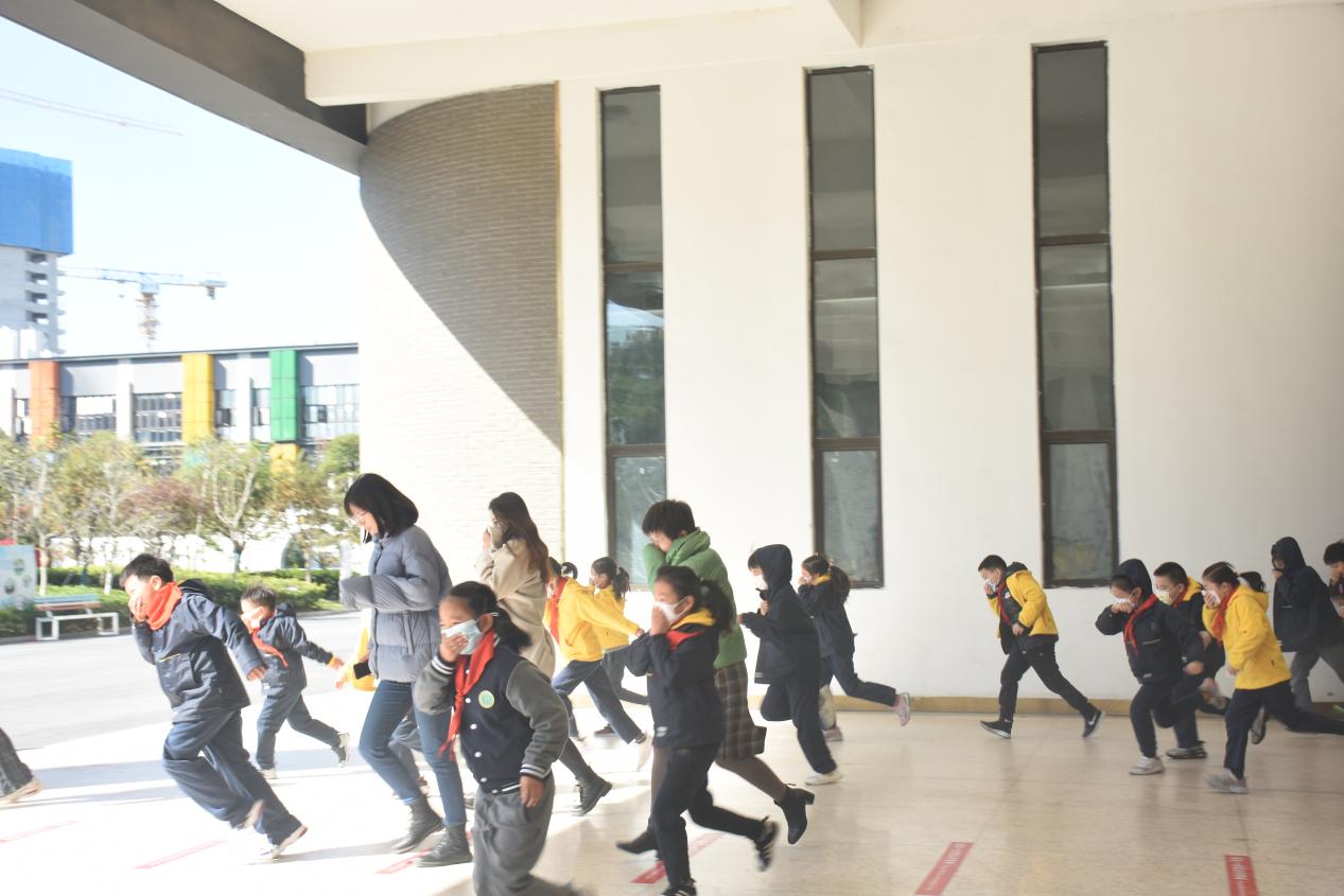 11月9日中午12点40分,随着安全警报的拉响,各班主任及教育小组老师立即组织学生进行疏散演练,学生们捂住口鼻,弯着腰,按疏散线路有秩序地迅速撤离,到达指定地点汇合,各班迅速清点人数并上报,确认所有同学全部安全撤离。本次演练共用时3分09秒。在活动过程中,全体师生配合默契,疏散时动作迅速,线路清楚,组织有条不紊,各岗位老师认真负责,整个疏散过程自始至终忙而不乱、井然有序。