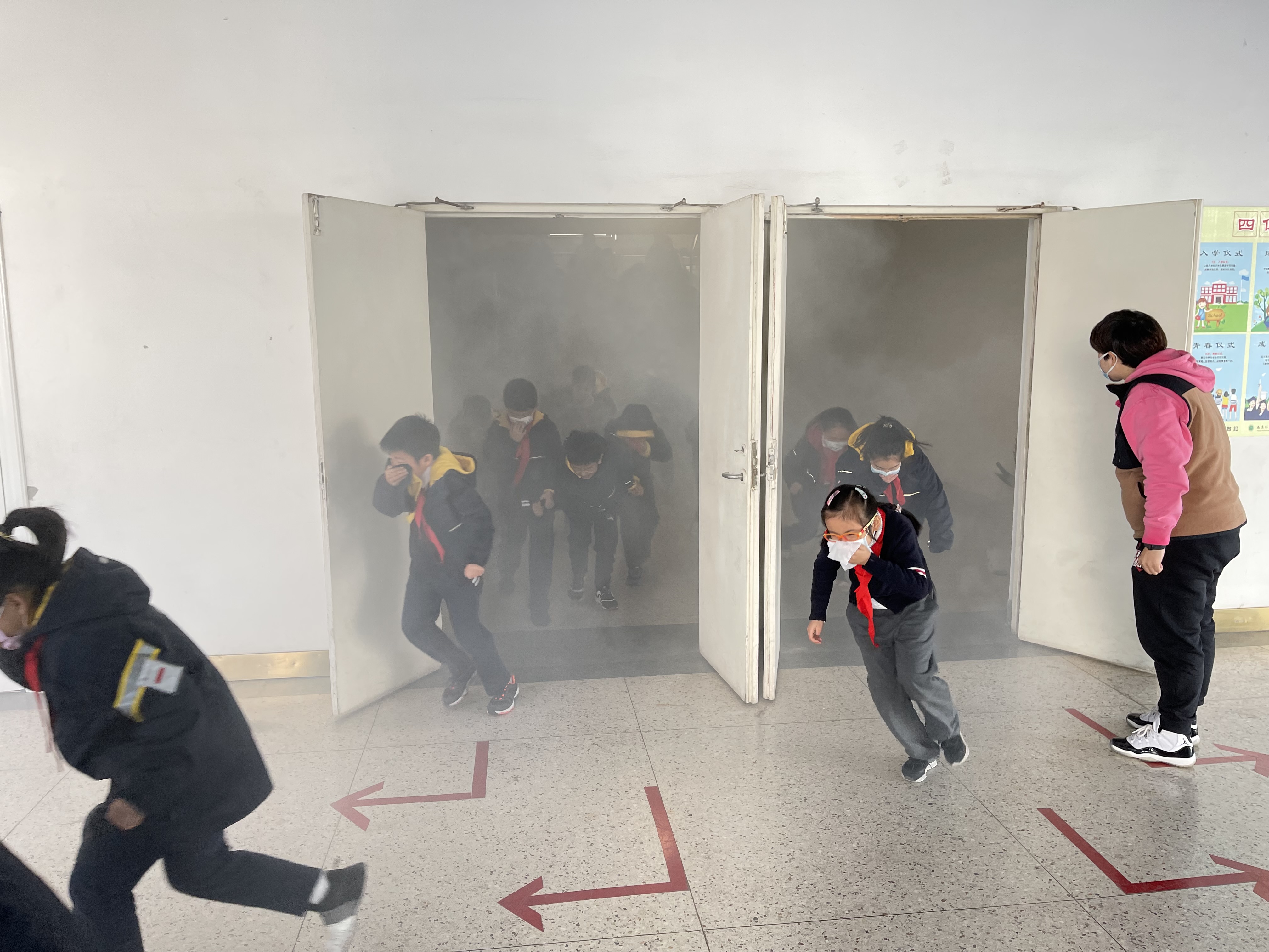 11月9日中午12点40分,随着安全警报的拉响,各班主任及教育小组老师立即组织学生进行疏散演练,学生们捂住口鼻,弯着腰,按疏散线路有秩序地迅速撤离,到达指定地点汇合,各班迅速清点人数并上报,确认所有同学全部安全撤离。本次演练共用时3分09秒。在活动过程中,全体师生配合默契,疏散时动作迅速,线路清楚,组织有条不紊,各岗位老师认真负责,整个疏散过程自始至终忙而不乱、井然有序。