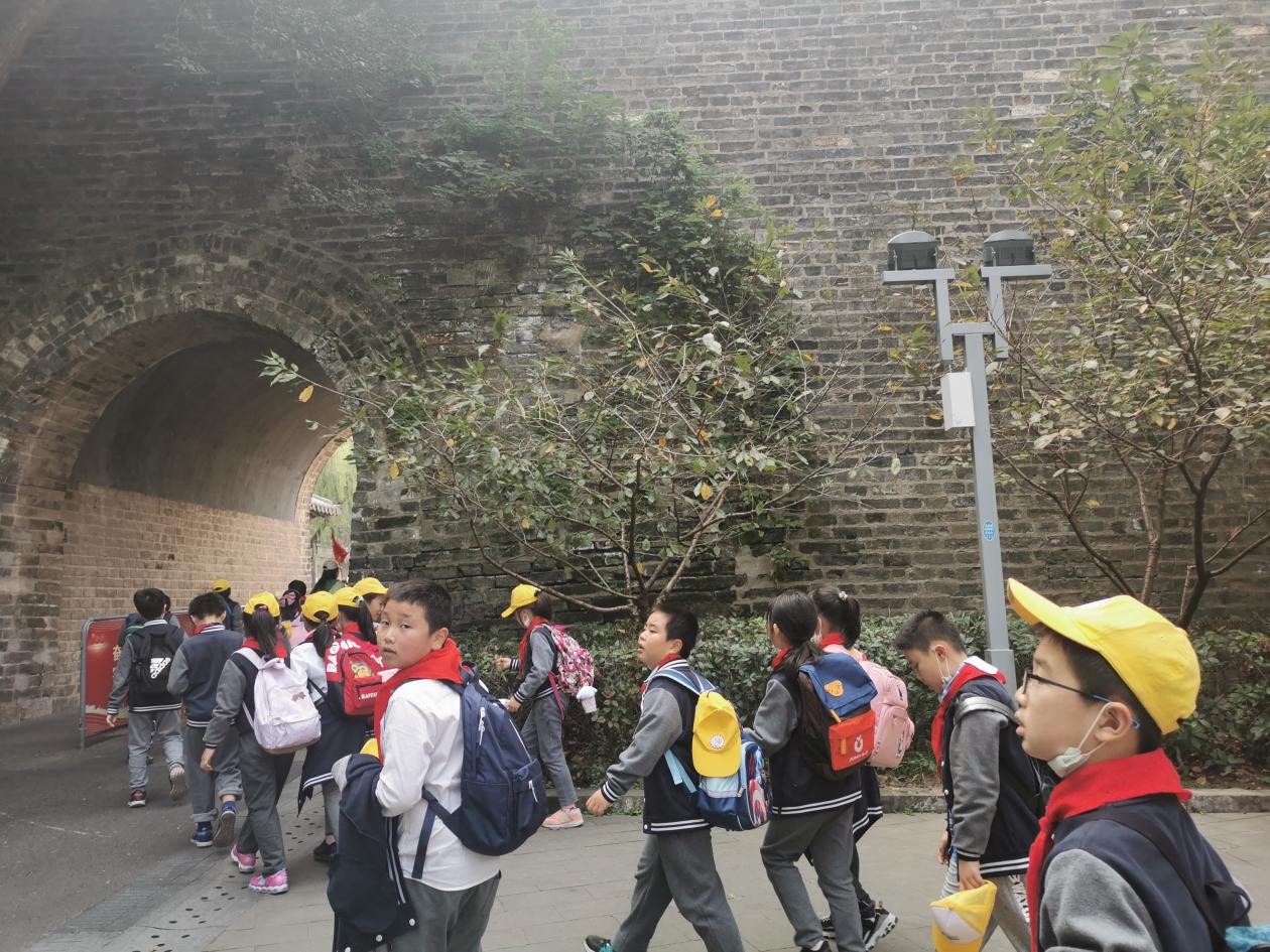 迈入解放门,孩子们便被南京古城墙上的砖块所吸引。触摸着历经沧桑的砖块,孩子们不由吟诵起李白写的“空余后湖月,波上对瀛州。”这湖、这城墙,哪一个不是南京成为六朝古都的见证?