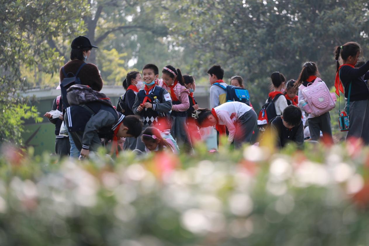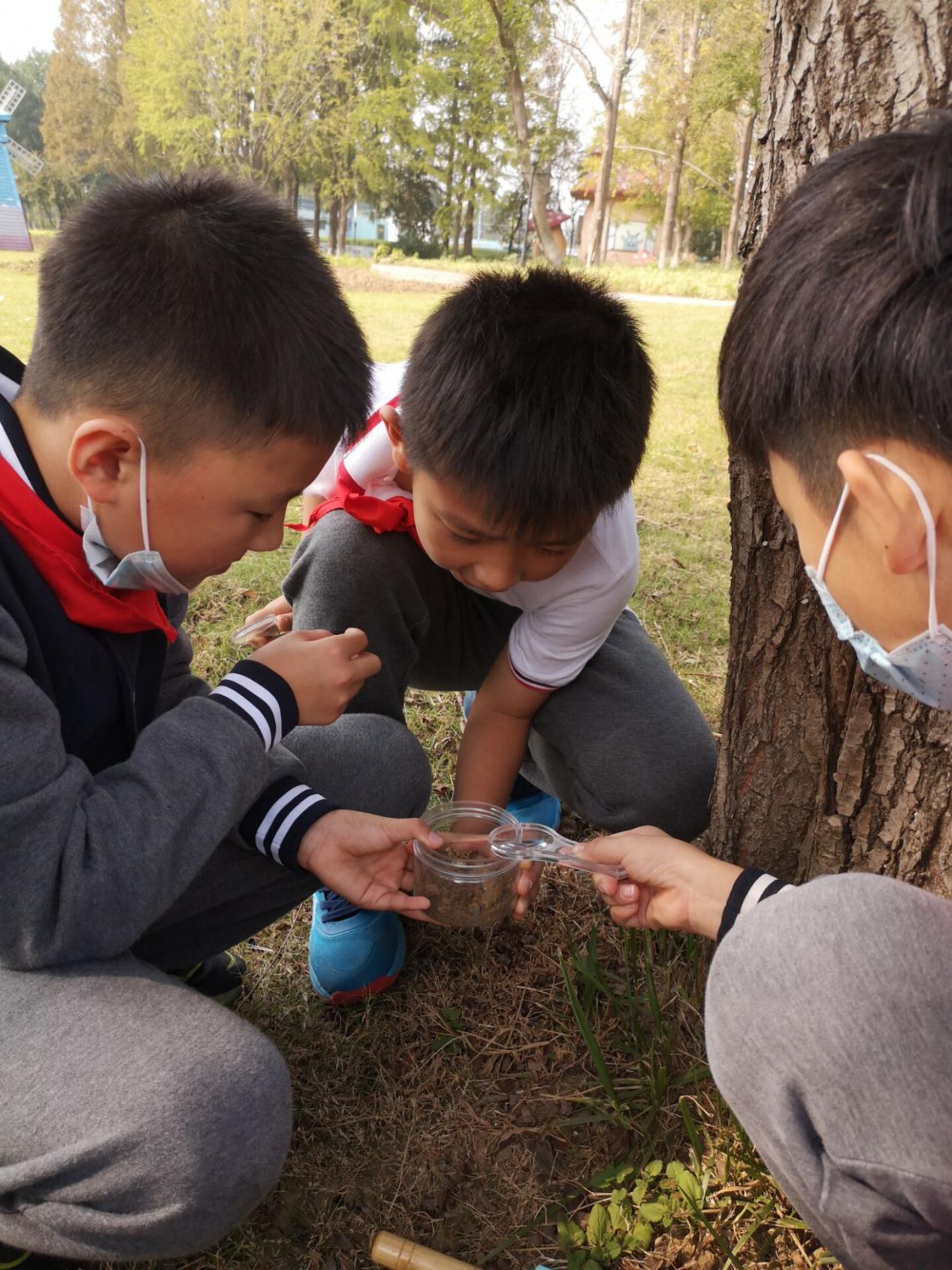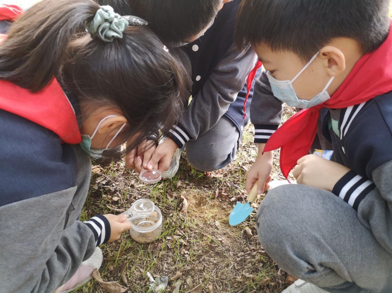 土壤里、大树下、池塘边、苗圃旁……藏着什么秘密,你看,三年级的孩子们正在认真观察研究。