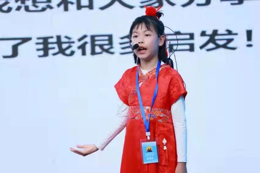 在随后的两个环节中,徐沐苒同学再次凭借自己出色的临场应变能力和语言功底,即兴改编了童话故事“The Rooster”,用流利、地道的语言介绍了自己创作的绘本书籍— “Granny’s Chinese magic story”。她自信、大方的表现获得了评委老师们的一致肯定,还成功与中国数字科技有限公司签订了儿童阅读创意作品孵化与版权合作意向书。下面就让我们一起来听一听徐沐苒同学的获奖感言吧!