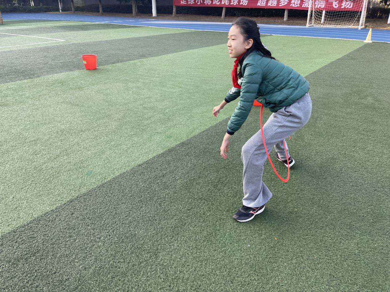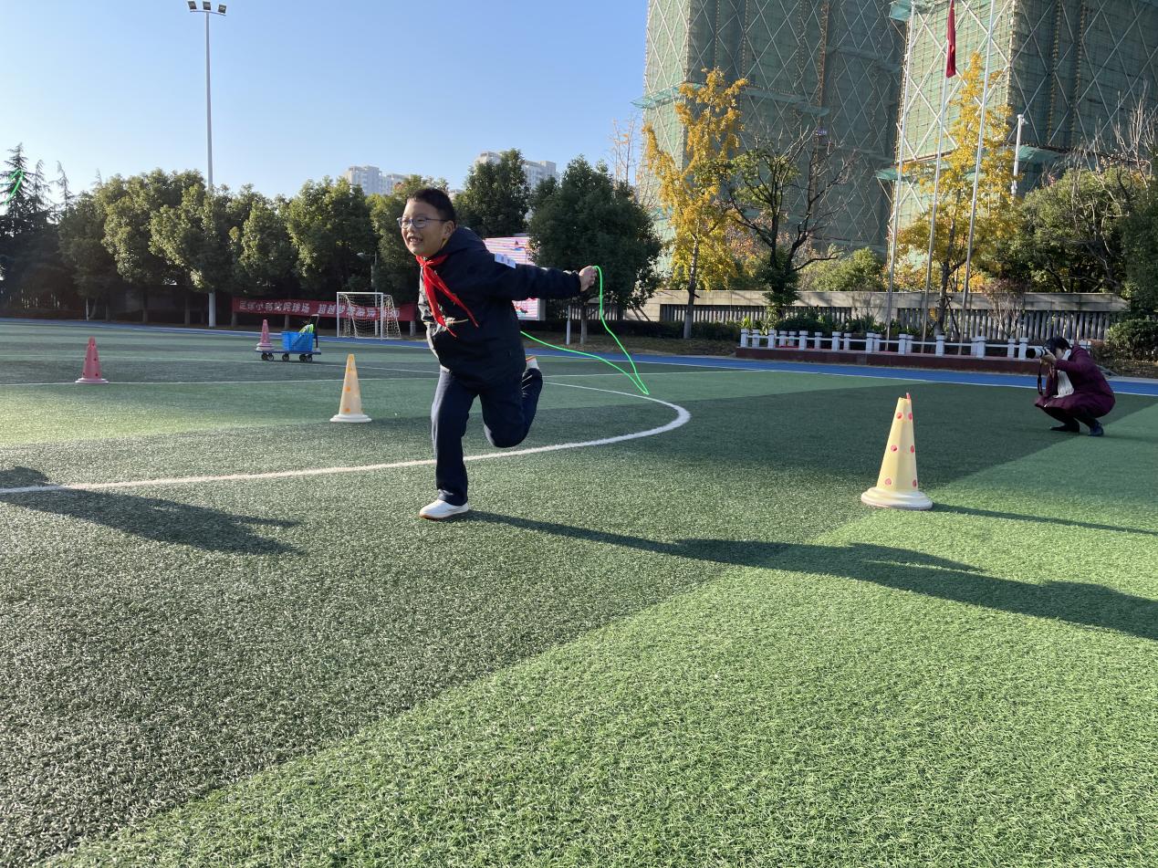 一、二年级的同学们在“跳绳跑”中学练结合,学以致用。