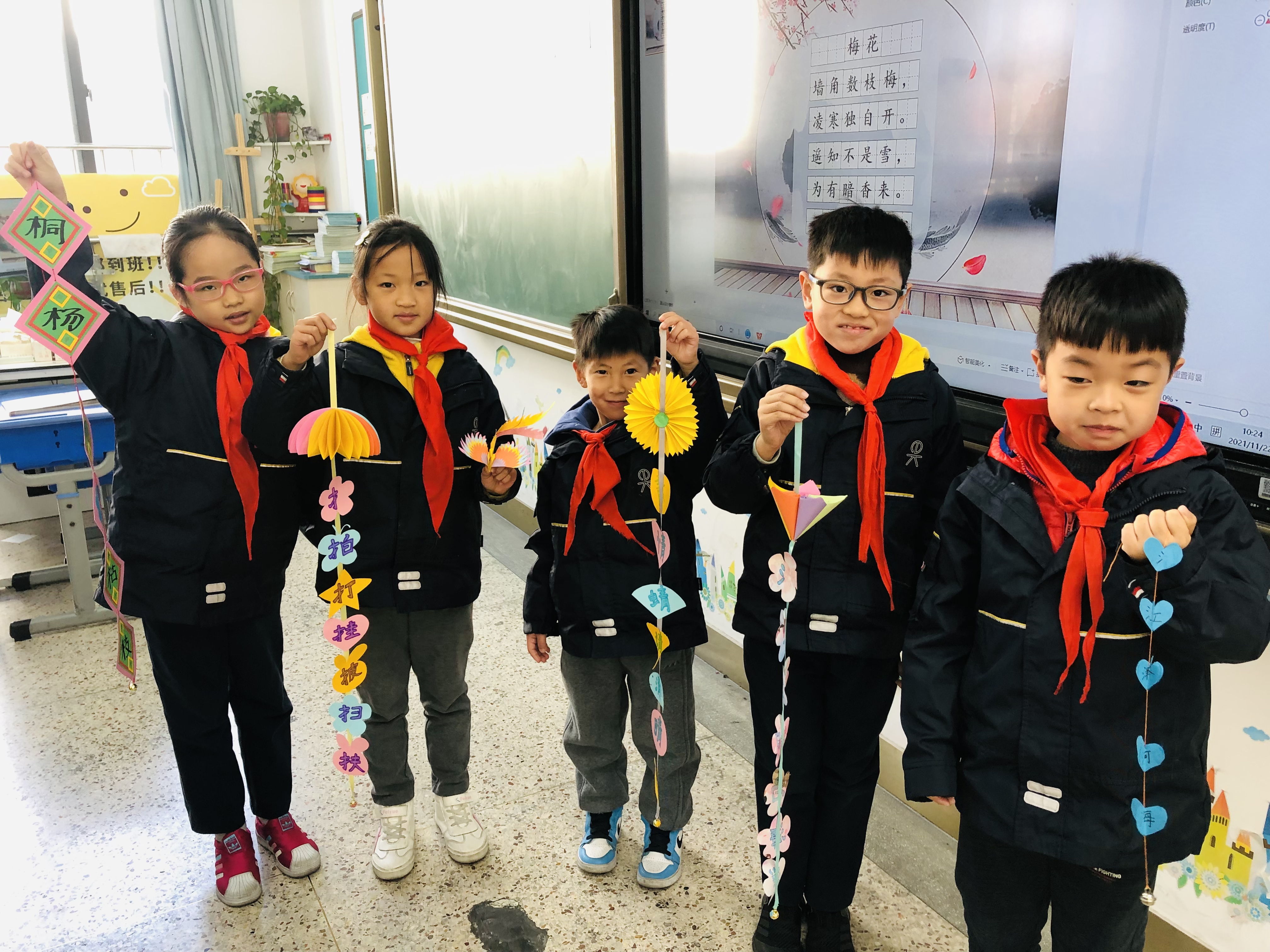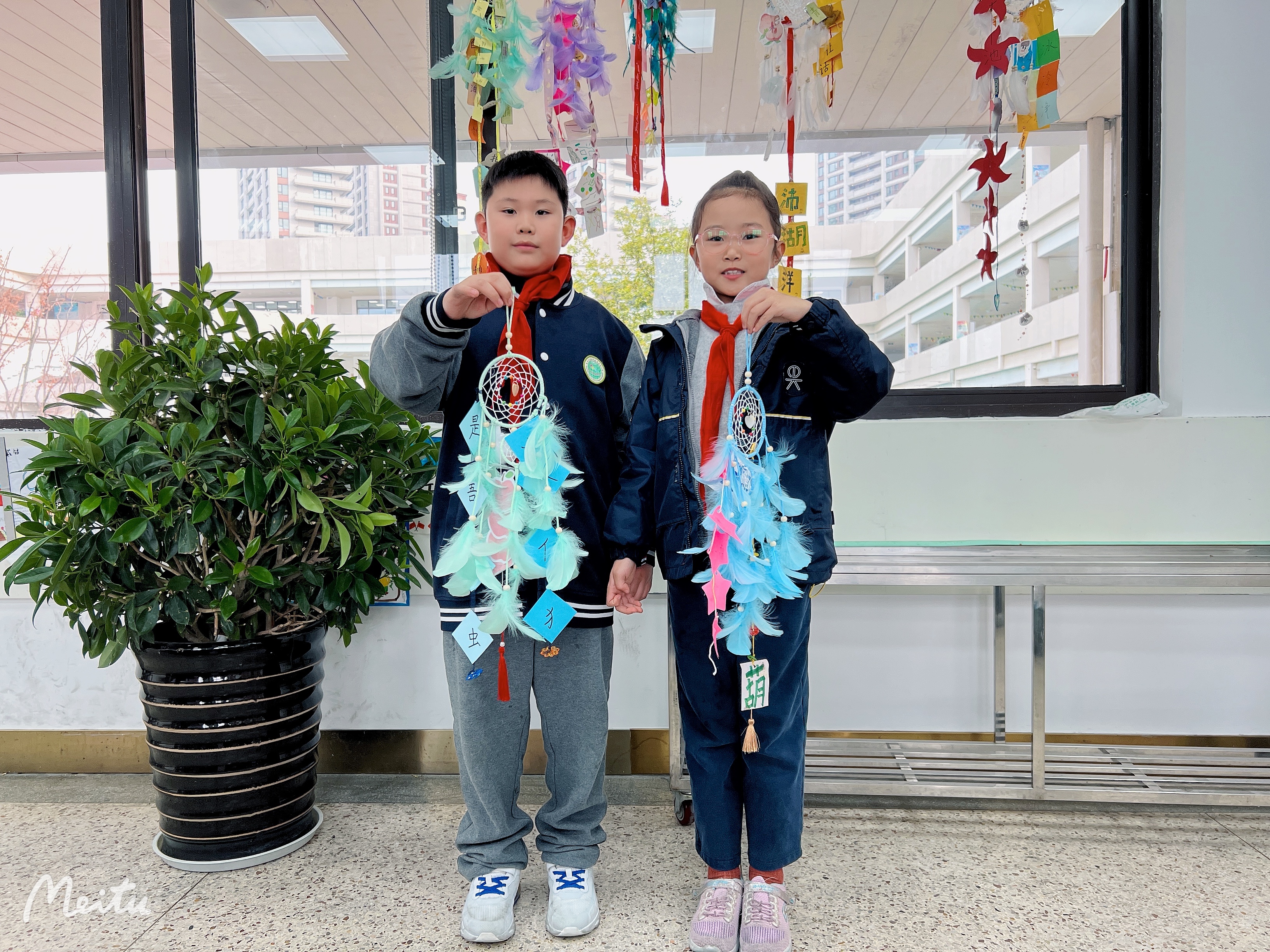 二年级的同学们选择“汉字风铃”的活动方式,大家以小组为单位将所学识字方法迁移到生活中去。既锻炼了动脑思考能力,又增强了动手操作能力。