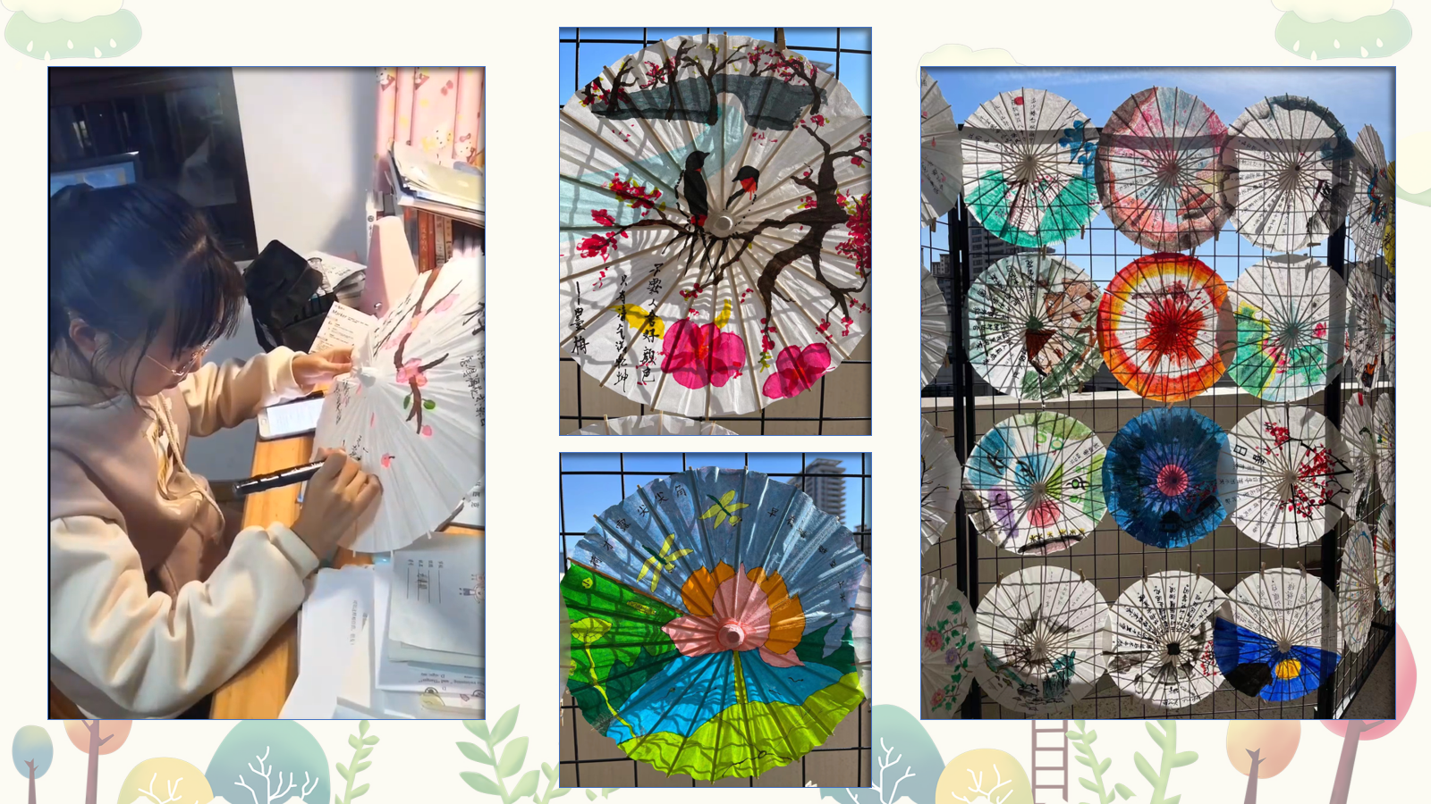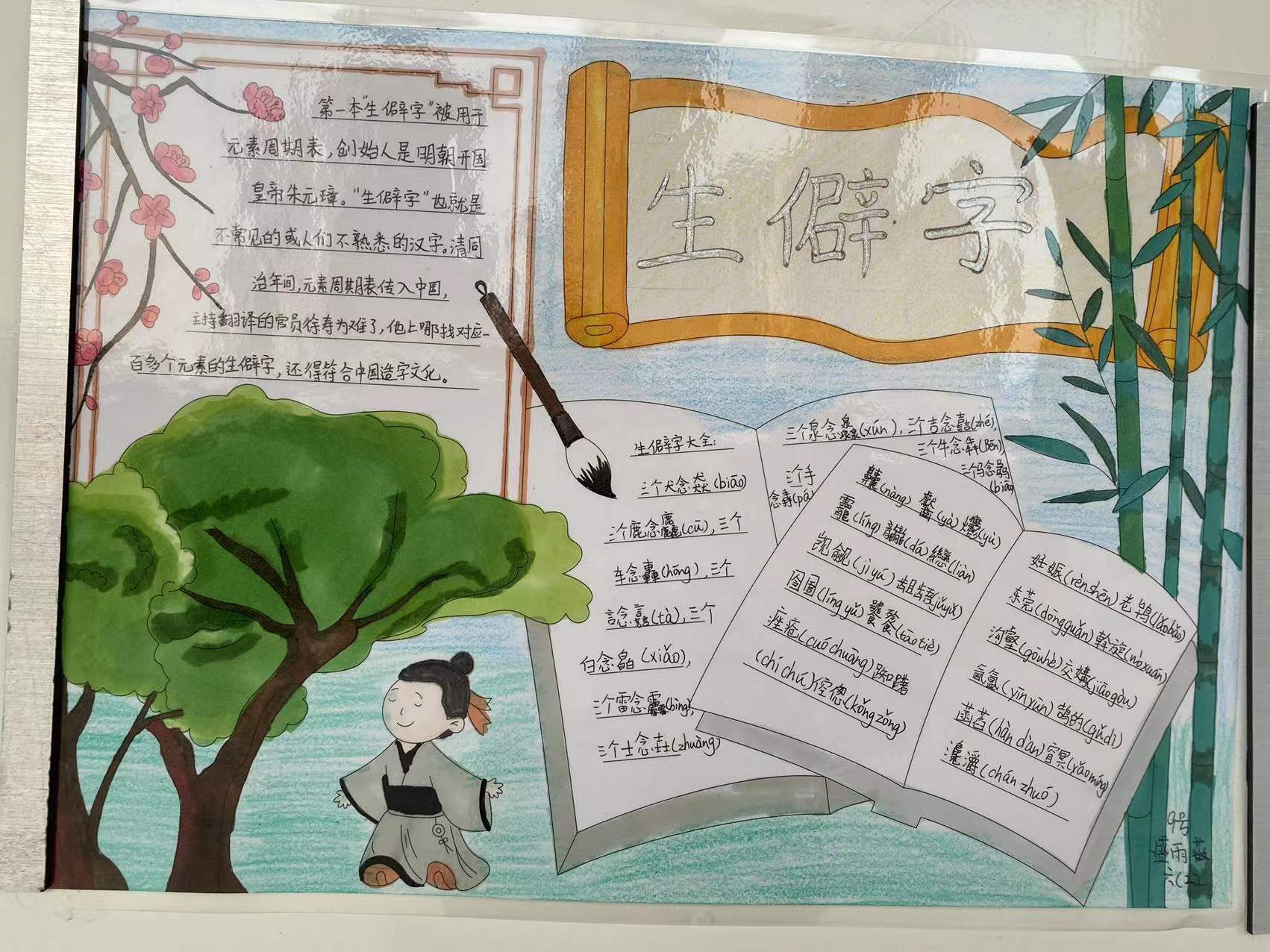 撑着油纸伞,结伴,行走在悠长而又优美的汉字长廊。六年级的大哥哥、大姐姐们在油纸伞上创作唯美汉字画,以“十二生肖”为创作的内容,体验汉字之美以及传统文化之韵。与此同时,六年级的同学们还在玩中研学,在研中交友——每人探究一个汉字中的“生僻字”,制作成汉字卡片,在班际间互猜互认,和同伴共同进步。