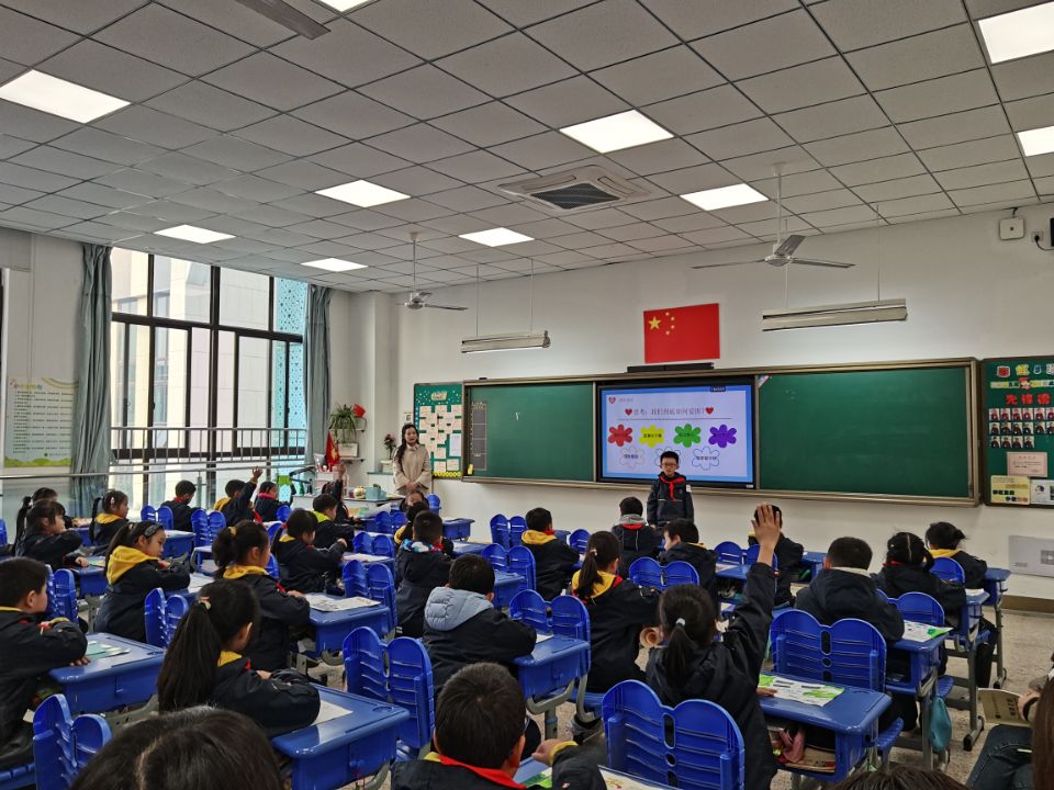 夕会课是学校的微型课,虽然只有短短的十五分钟,却是班主任进行班级日常管理工作总结的重要契机。为切实发挥夕会课的教育作用,12月9日下午,南外青奥村小学开展了“祖国在我心中”的主题夕会观摩活动,承担此次观摩活动的是二年级5班。