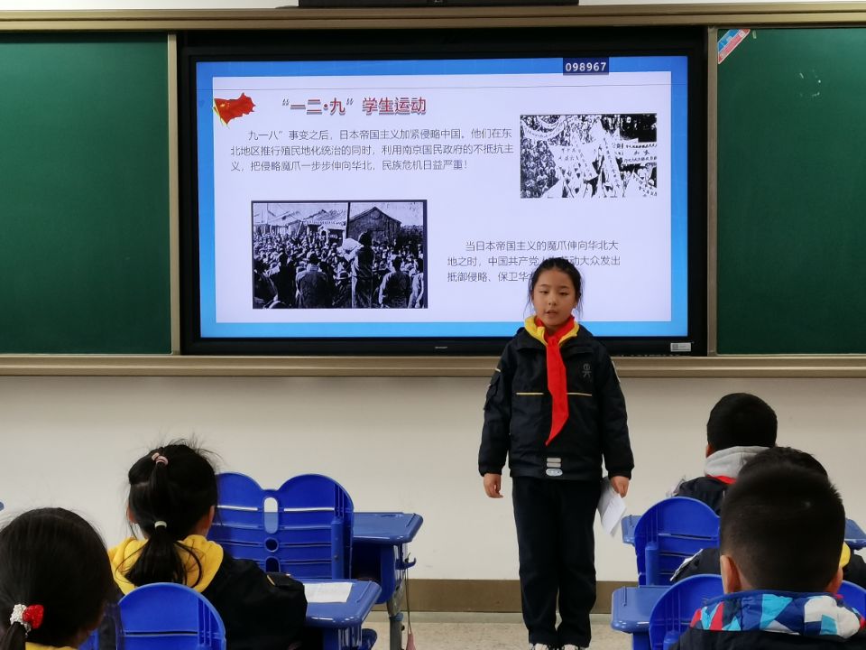 恰逢一二·九运动86周年纪念日,主持人赵振皓便和同学们回顾了先辈们的爱国运动历史;