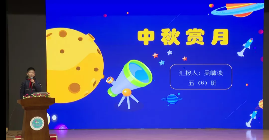 五(6)班的吴啸谈同学借由生礼物“天文望远镜”的观察,大胆假设,小心求证,通过录制月球“逃跑”视频和公式推导,确定了地球自转导致了月球消失现象。