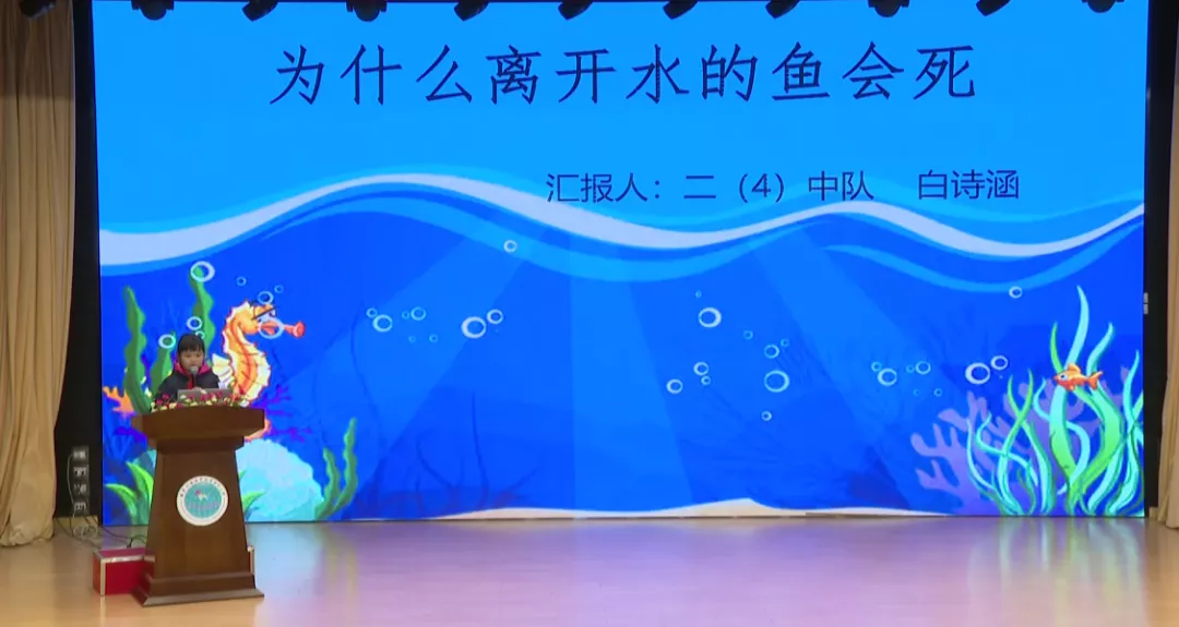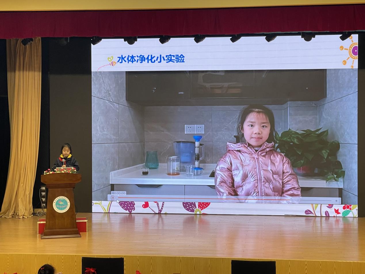 四(5)班的夏睿泽同学通过具体生动的实验展示,向大家介绍如何检测水质和净化水体,并号召大家保护水资源。