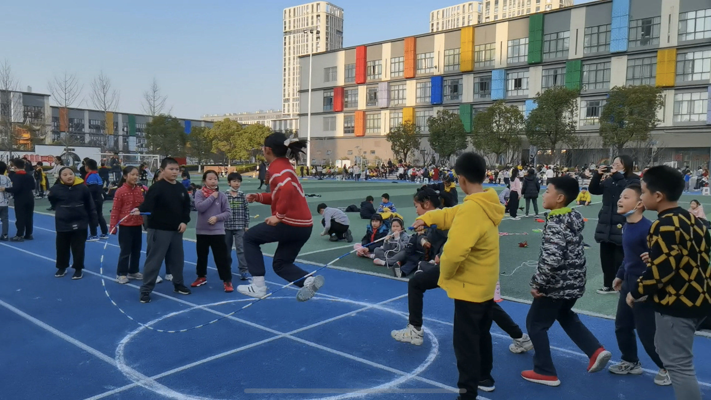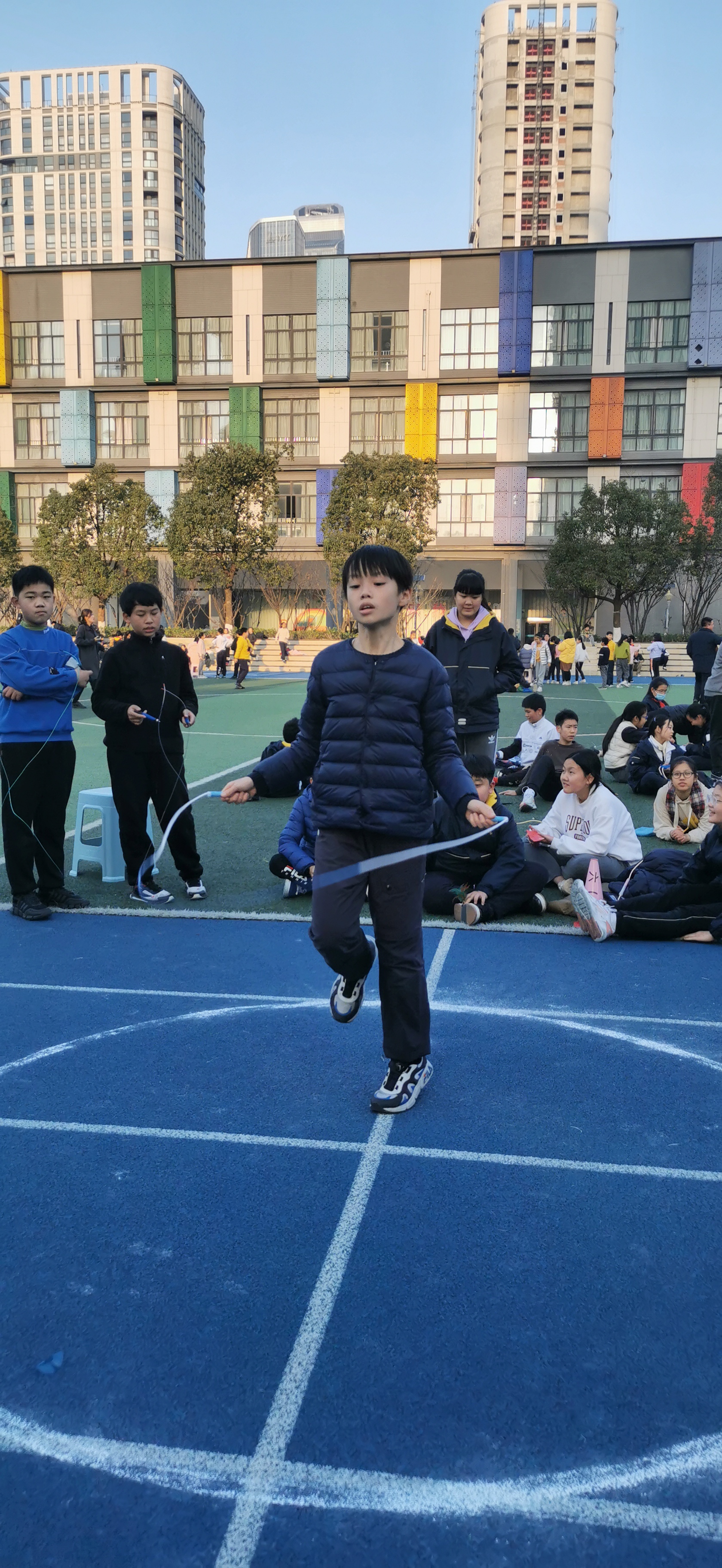 二至六年级的集体长绳比赛掀起了高潮,做为集体项目之一,每个班都精挑细选班里的长绳“王者”,使比赛成为速度与技术的PK,非常有看点,虽然中途都有些许失误,但是同伴间相互鼓励,奋力拼搏!