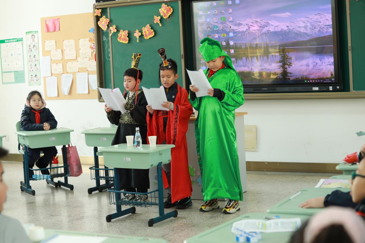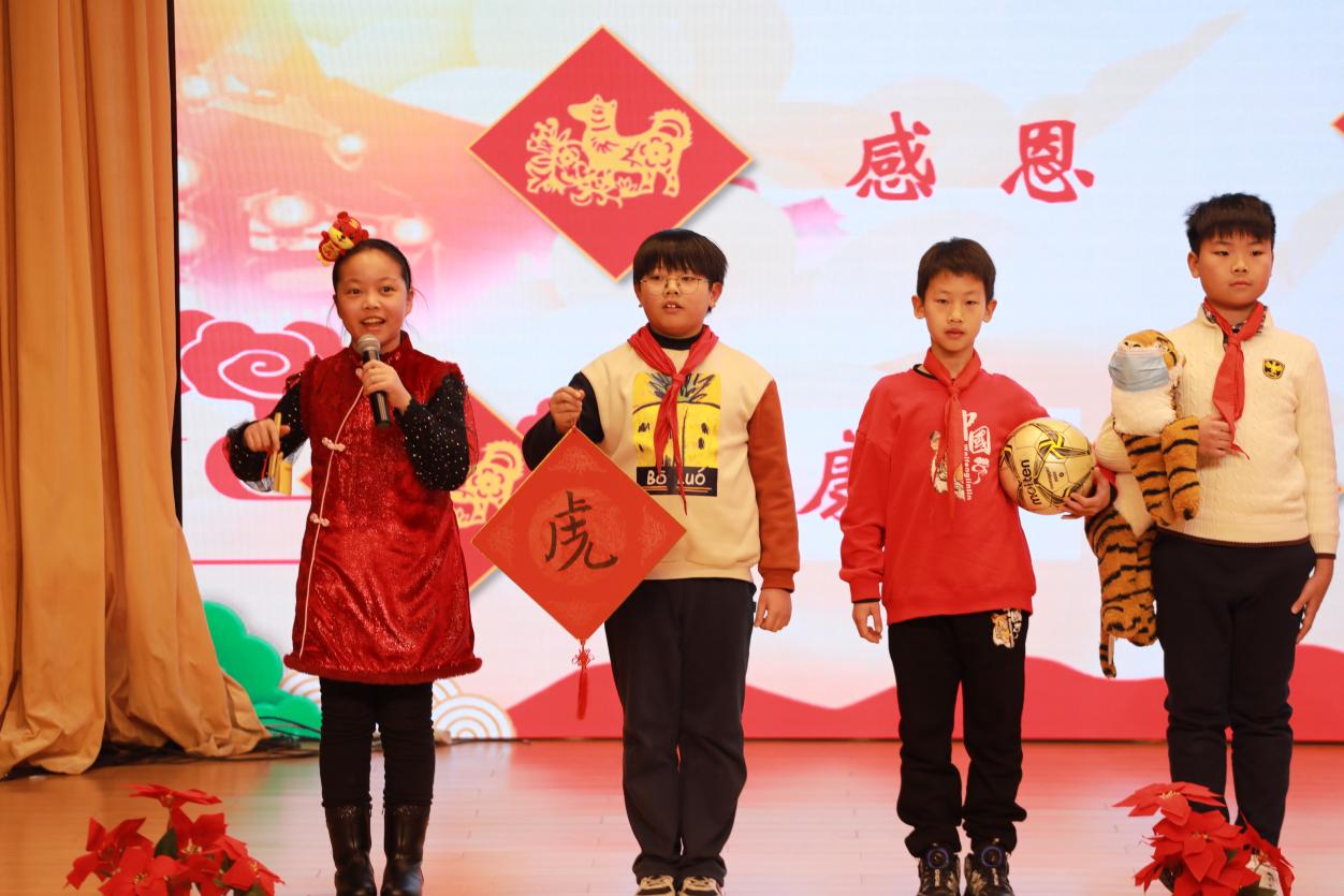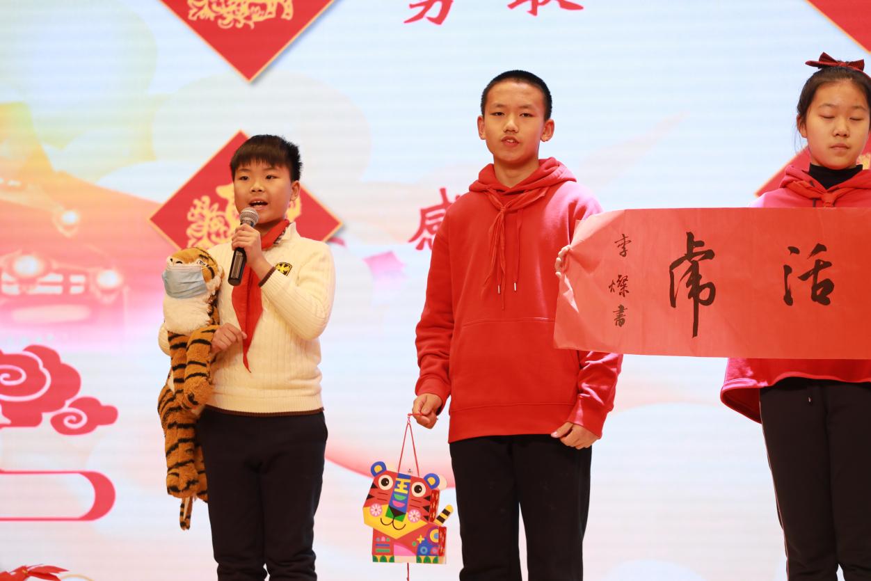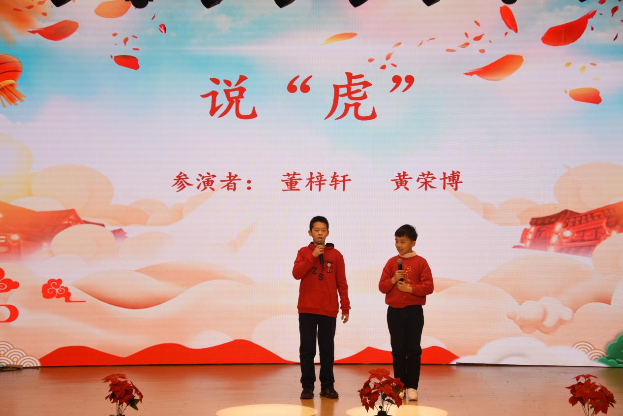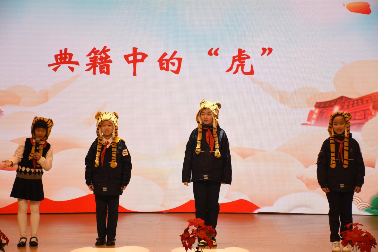 虎年到,同学们对“虎”字追根溯源,探寻字的演变,分享交流与“虎”相关的成语典故,还编排了课本剧和相声。