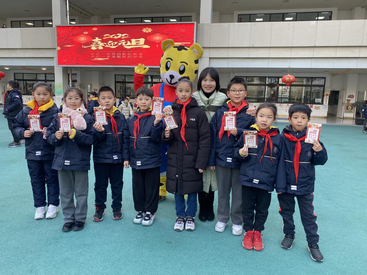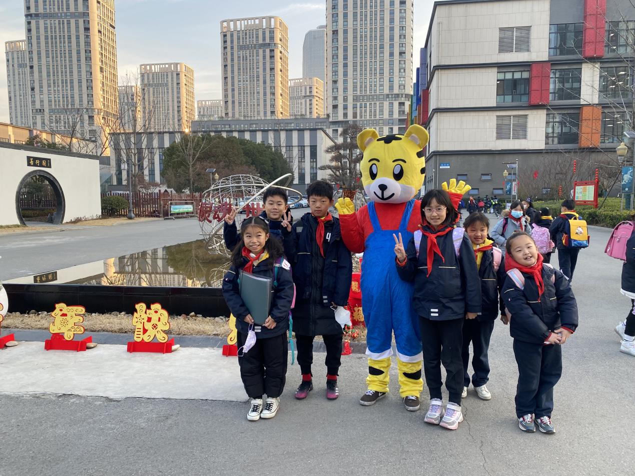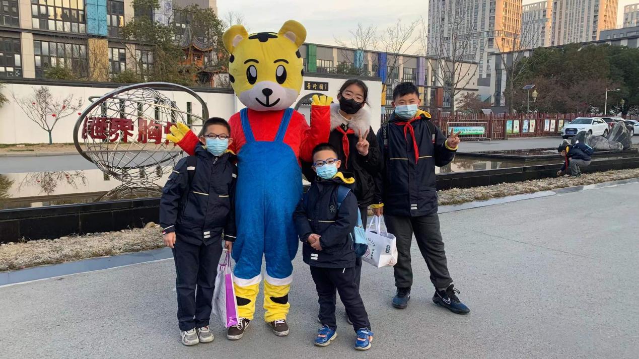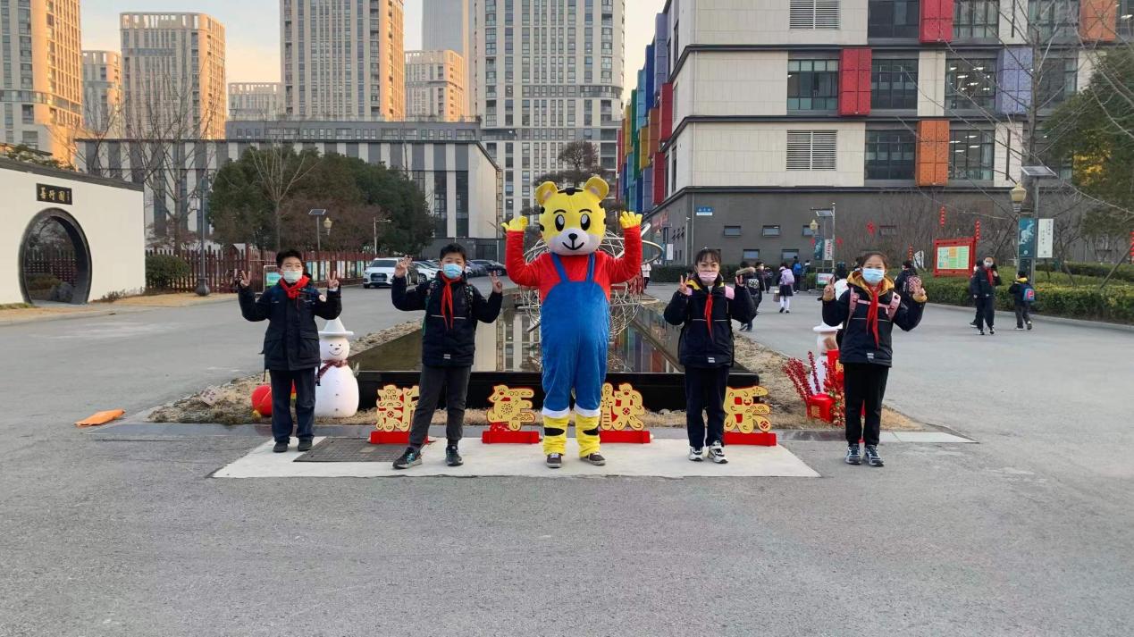 清晨,同学们怀着对新年的美好憧憬来到学校,可爱的小老虎已在校门口等待,将新年的快乐送给每一个孩子。